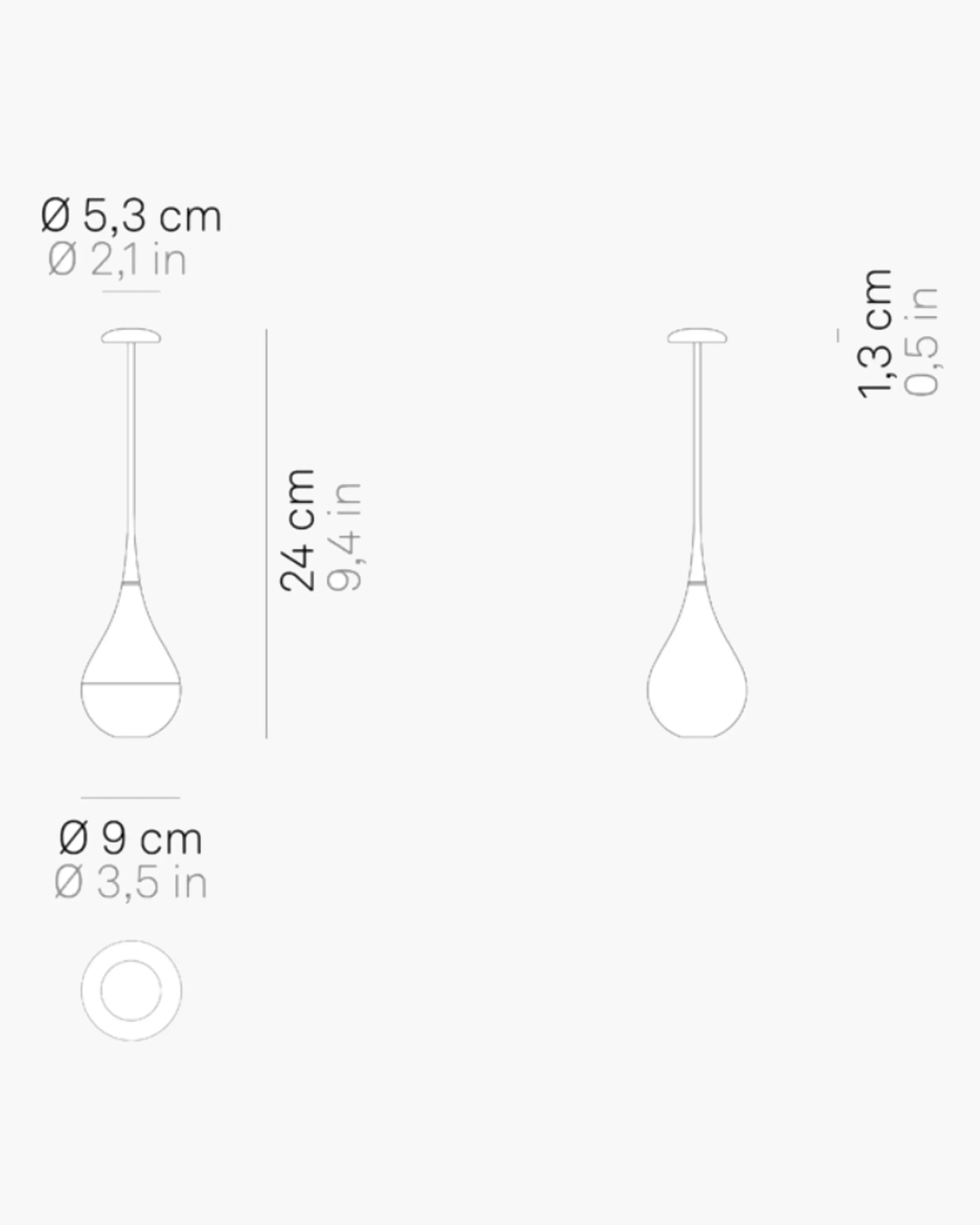 With a replaceable lithium battery pack, the Zafferano Dondolina portable lamp delivers 8 to 9 hours of warm, steady light at full power. It charges quickly—just 2 to 3 hours at 2A—using the included contact charging base (Type C). While a charger is not included, the efficient recharging system ensures you’re never left in the dark.