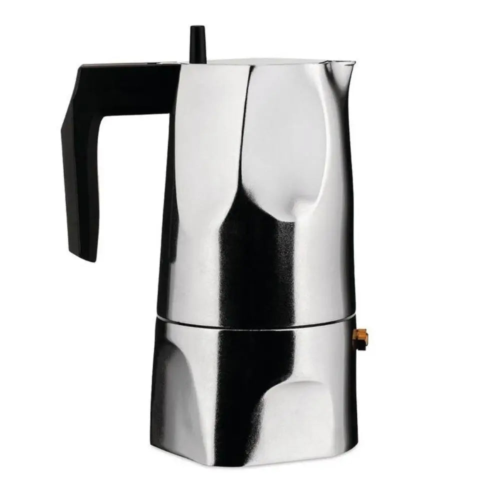 The Alessi MT18 Ossidiana coffee maker is where traditional Italian espresso culture finds its voice in modern architecture. Designed to stand out in the Alessi Coffee Pot category, this piece is named after volcanic stone for good reason—its bold, faceted shape mirrors the natural strength and elegance of obsidian. Crafted from durable die-cast aluminium, it brings structure and sculpture to your daily coffee moment.