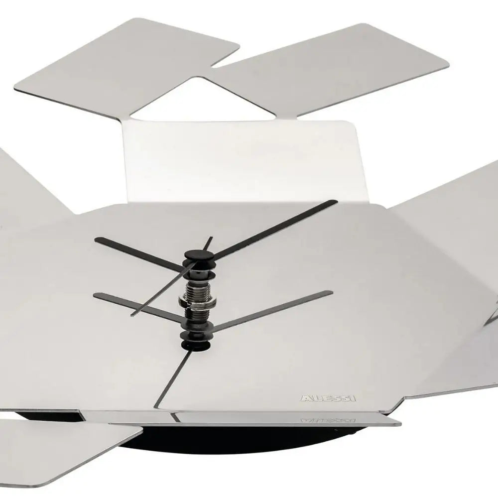 Belonging to the Alessi Clocks category, this piece defies conventional expectations. Its asymmetric shapes give it a light, airy dynamism that plays beautifully with interior lighting. Whether hung in your kitchen, hallway, or living area, it becomes an instant focal point—a visual conversation between structure and spontaneity.