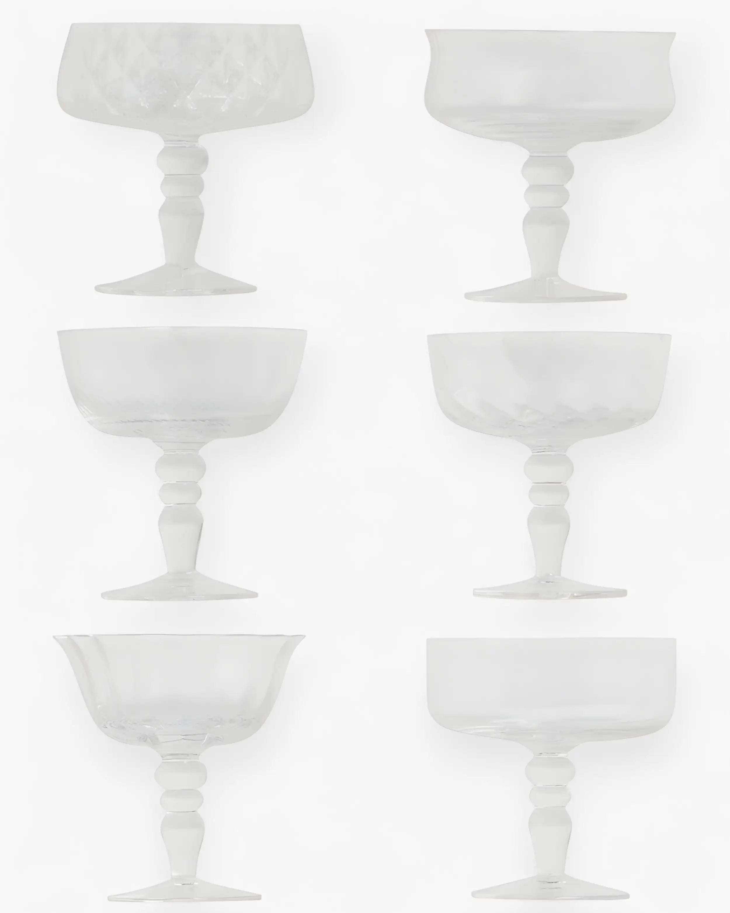 Elegant, unconventional, and full of character, the Bitossi Diseguale set of 6 champagne bowls turns every celebration into a refined ritual of style. Each bowl is hand-blown and shaped by expert artisans, featuring unique textures and subtle variations that make no two pieces alike. Whether in clear, amber, or soft blue glass, the collection captures the shimmer of bubbles and the poetry of imperfection: an ode to the craftsmanship that defines the Diseguale set collection.