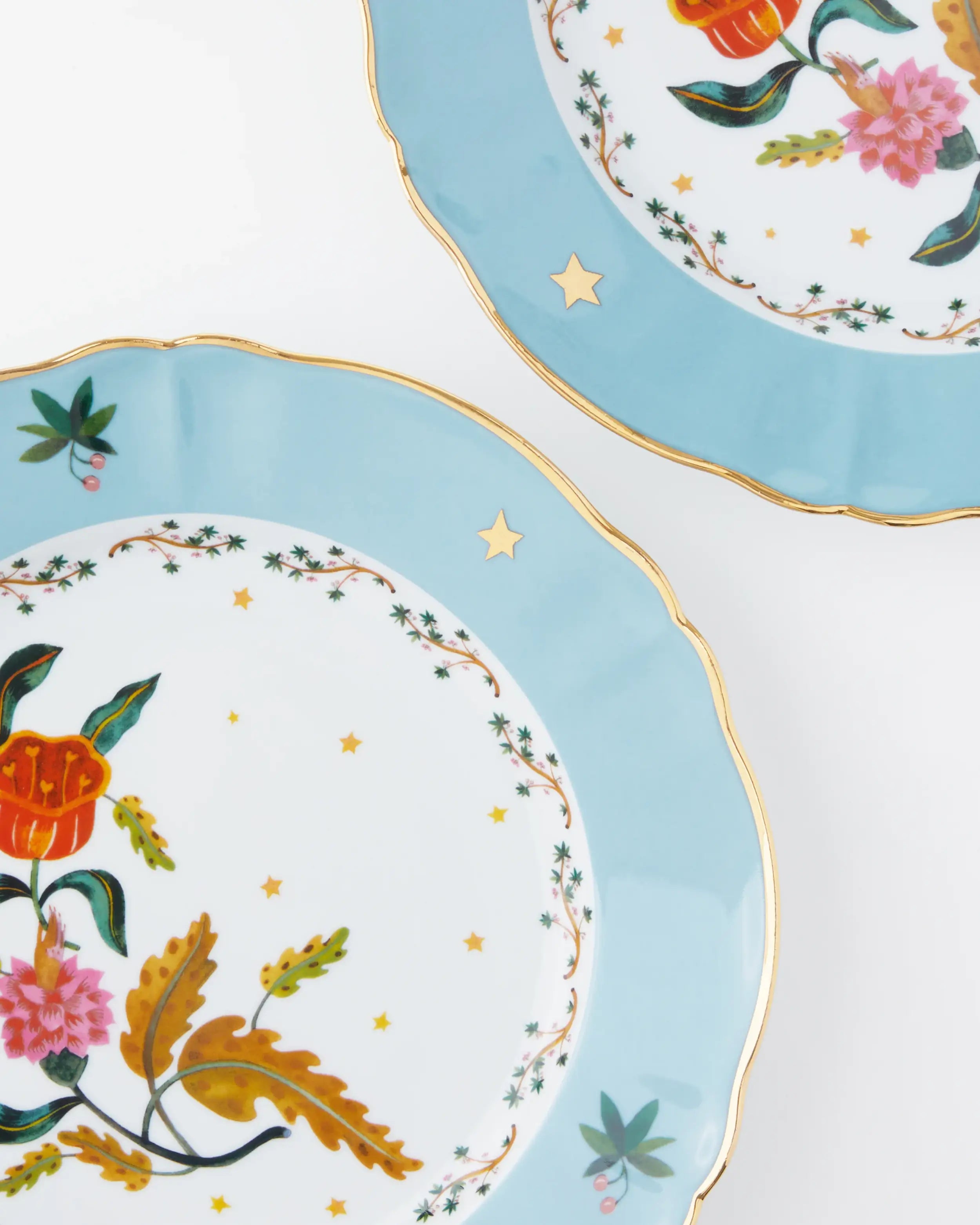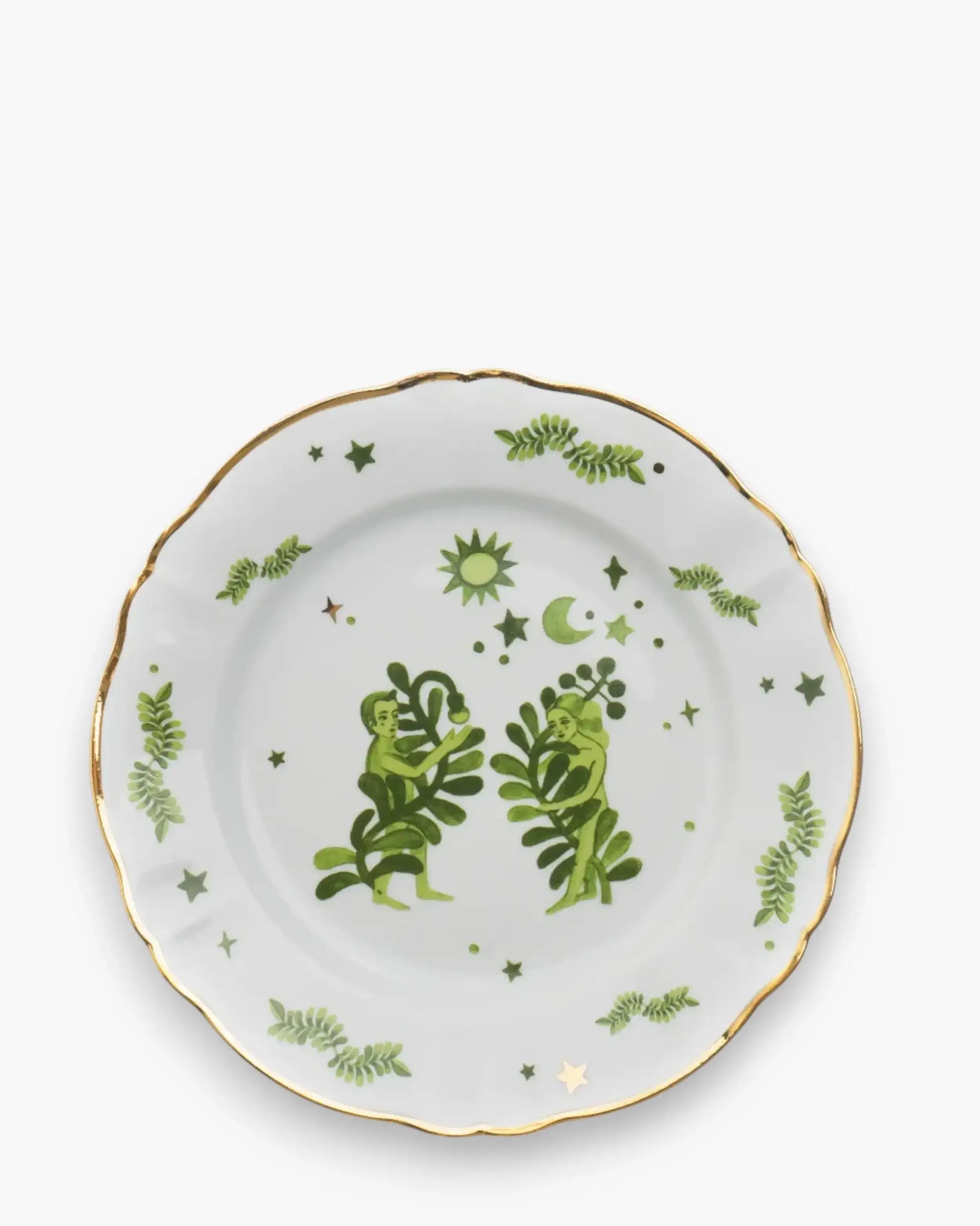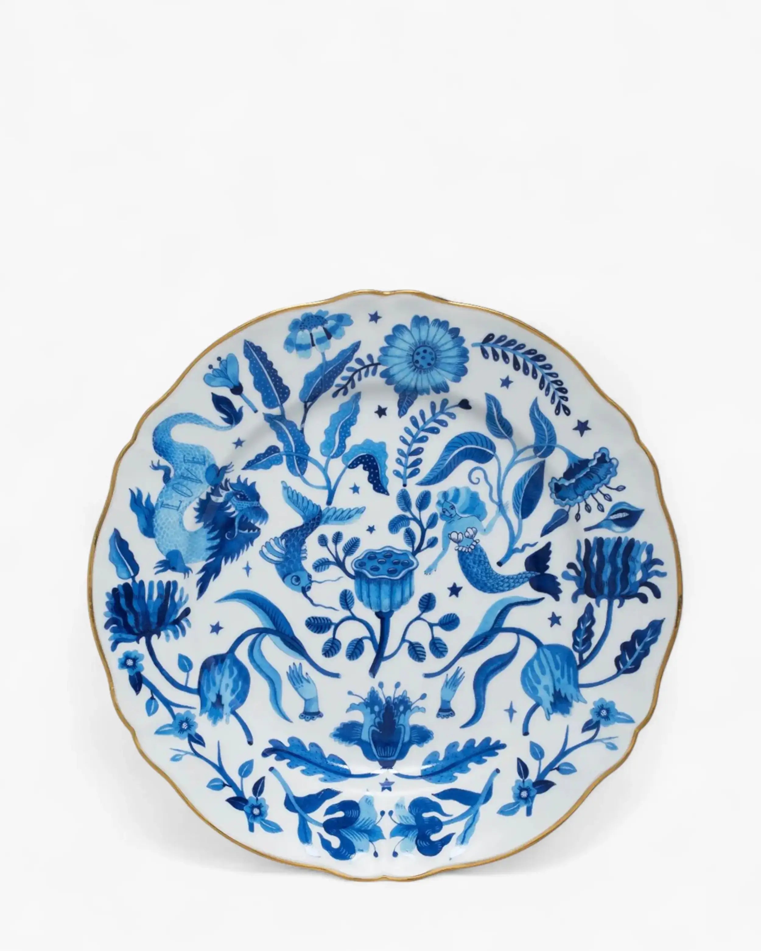 Made of premium porcelain, this piece demonstrates the perfect blend of durability and refinement. The subtle gilded edge enhances its form, framing the artwork like a modern fresco. Each plate is meticulously finished to achieve a luminous glaze that reflects light with soft precision. As an object of both design and care, hand wash only is advised to preserve the intricate gold detailing and maintain the beauty of its porcelain surface. While not intended for microwave use, it remains a timeless collector’s piece: a celebration of artistry for modern living.