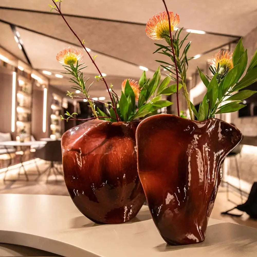This collectible ceramic vase brings warmth and movement to contemporary interiors. Whether placed as a centerpiece or displayed among a curated collection, it becomes a point of dialogue, a connection between the home and the natural world. The Vases category within the Amazonia line emphasizes emotional presence over excess: a restrained beauty that endures. Its tactile finish invites admiration, its form suggests growth, and its simplicity radiates quiet luxury.
