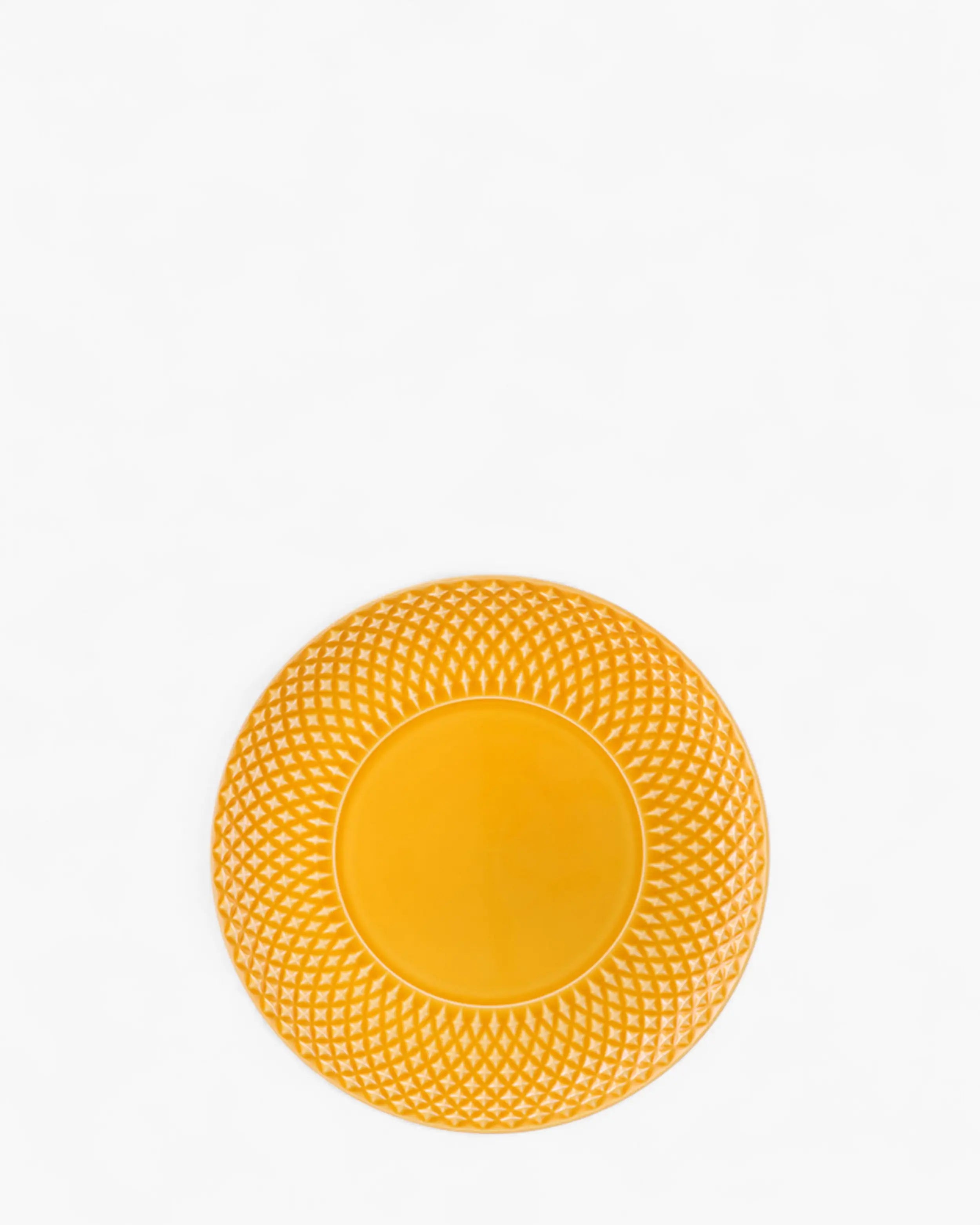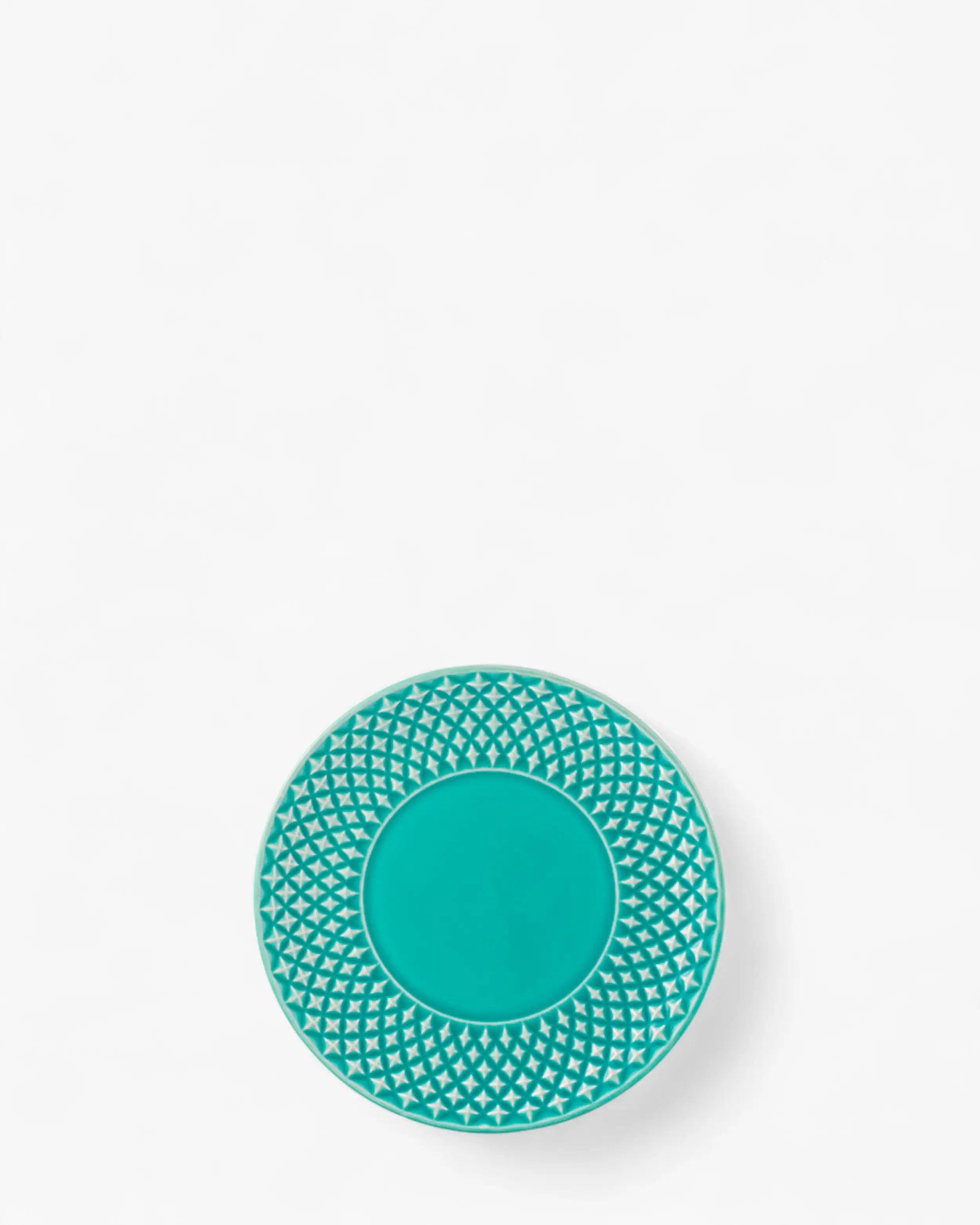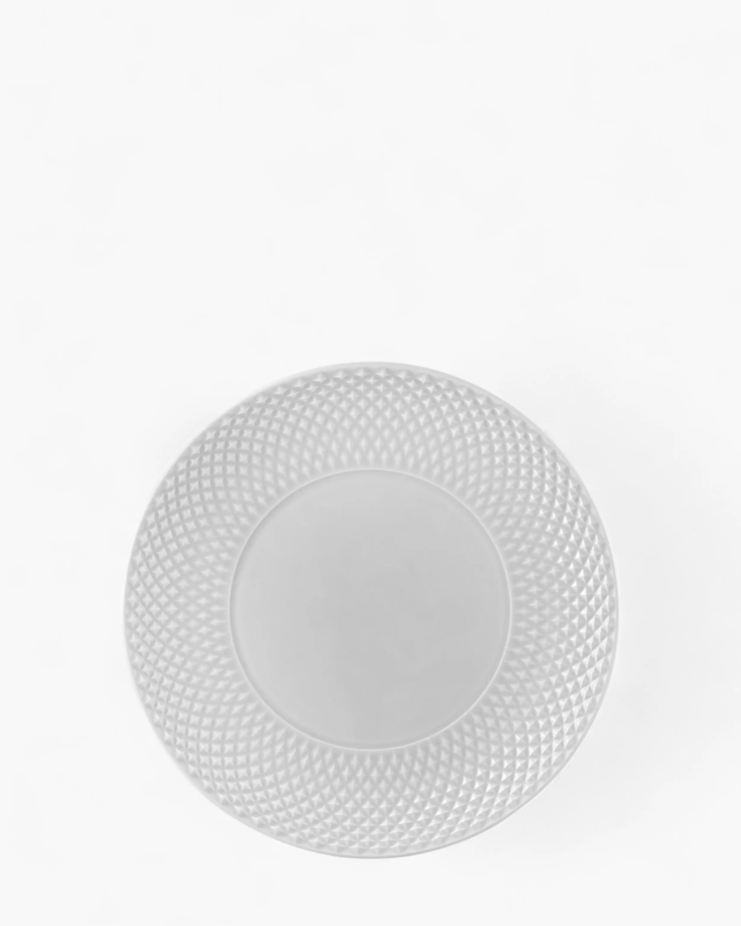 Bordallo Pinheiro Bicos plate is a conversation between shadow and light: a crisp grid of tiny diamonds that catches the eye without stealing the show. In this piece from