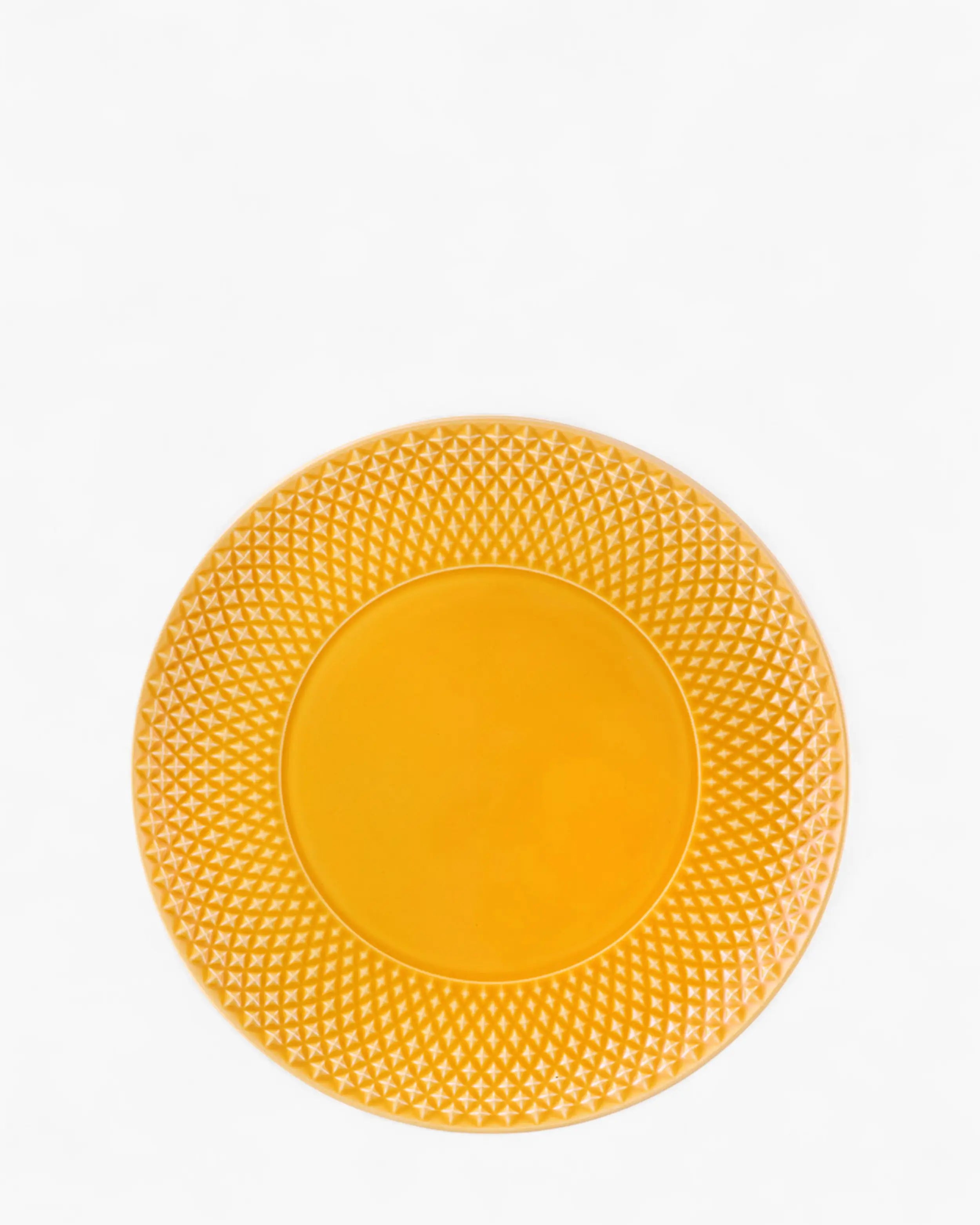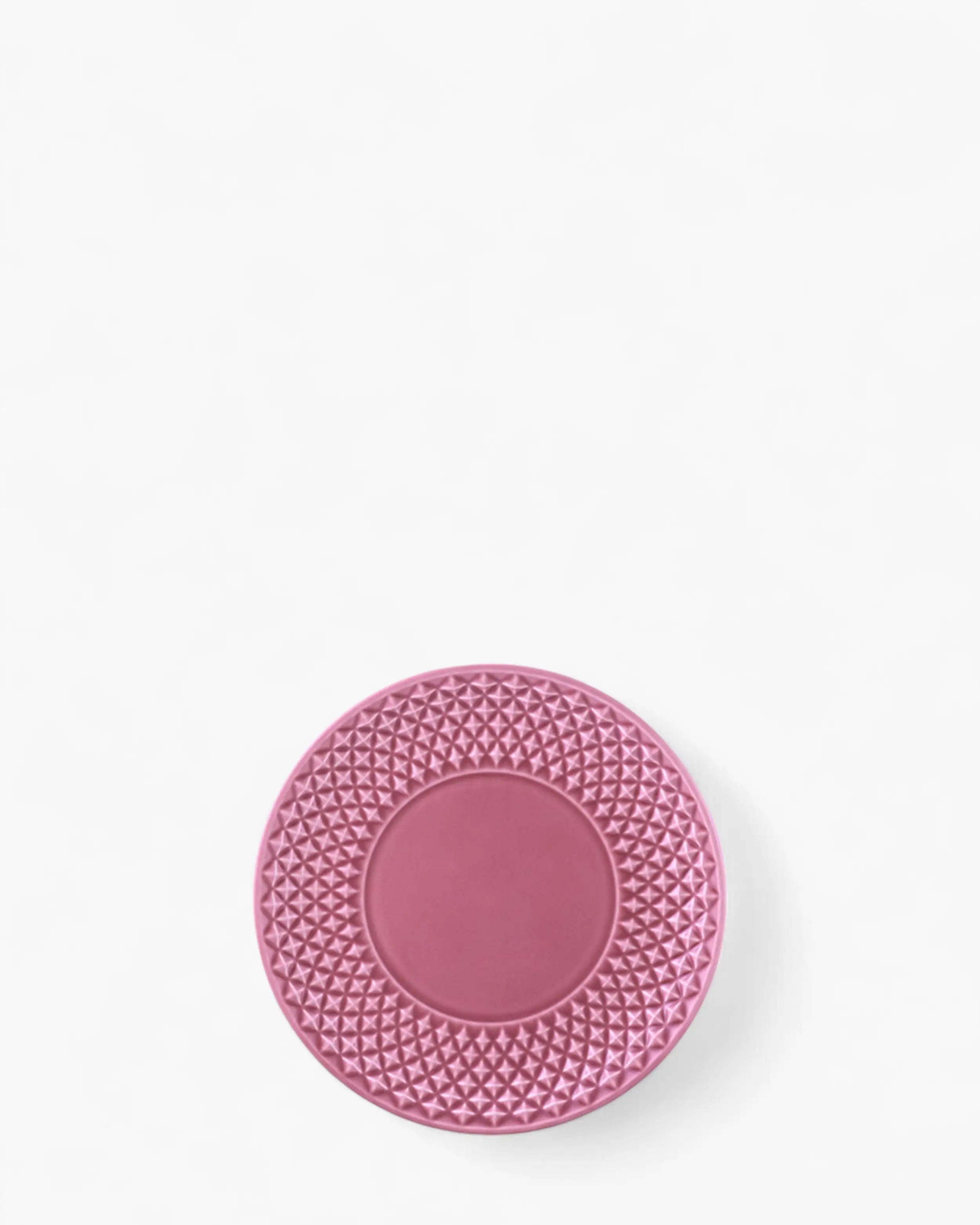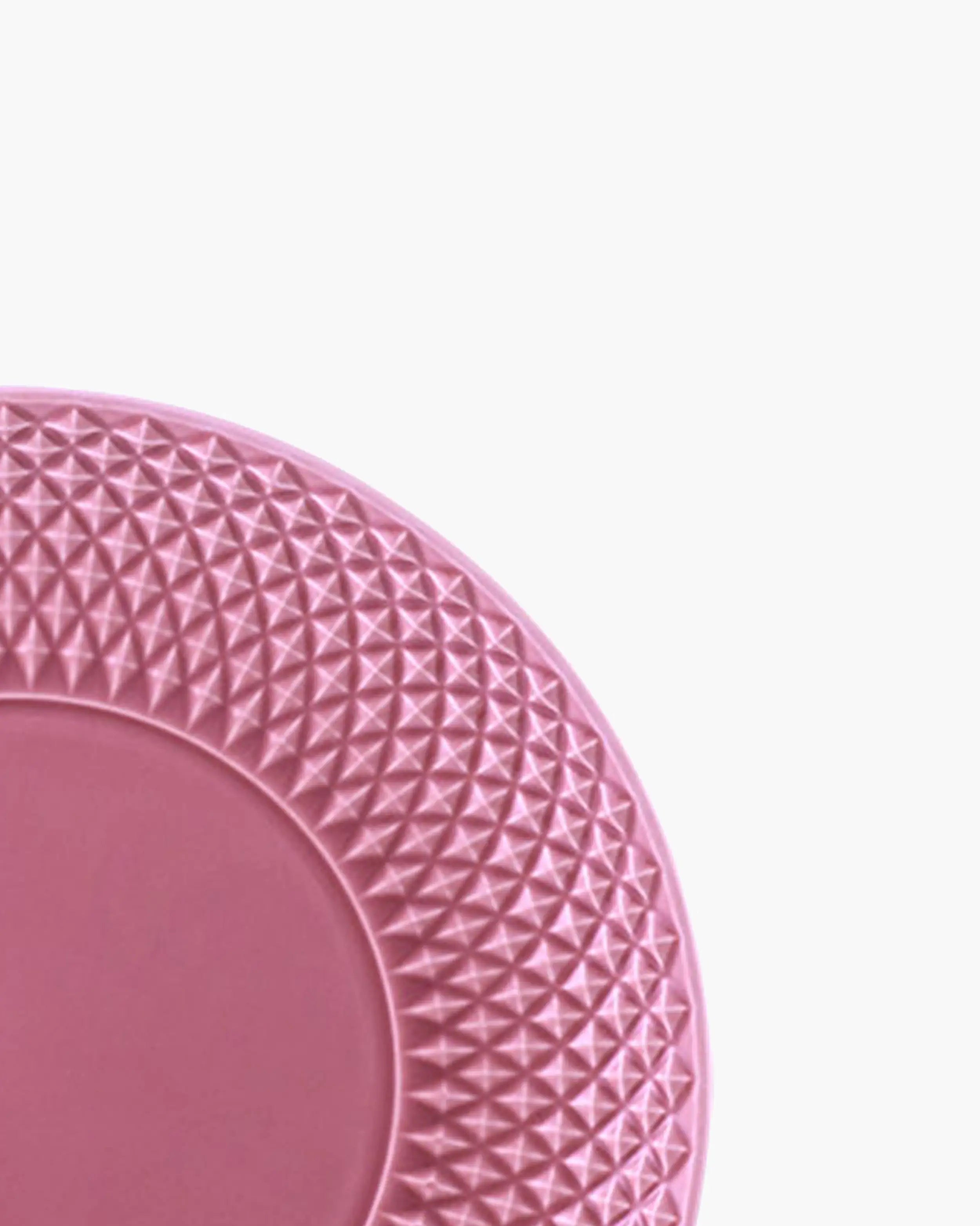 Because the collection is available in multiple diameters and a curated palette of Amber, Mineral Grey, Mint Green and Pink, you can design a table by mood: mineral and calm for weekday dinners, mint-fresh for spring parties, or amber to warm candlelight. Combine with matching bowls and salad pieces to build a complete setting, or mix across colours for a collected look. The faceted relief amplifies ingredients’ natural tones, so even simple recipes feel considered and photogenic in any light.
