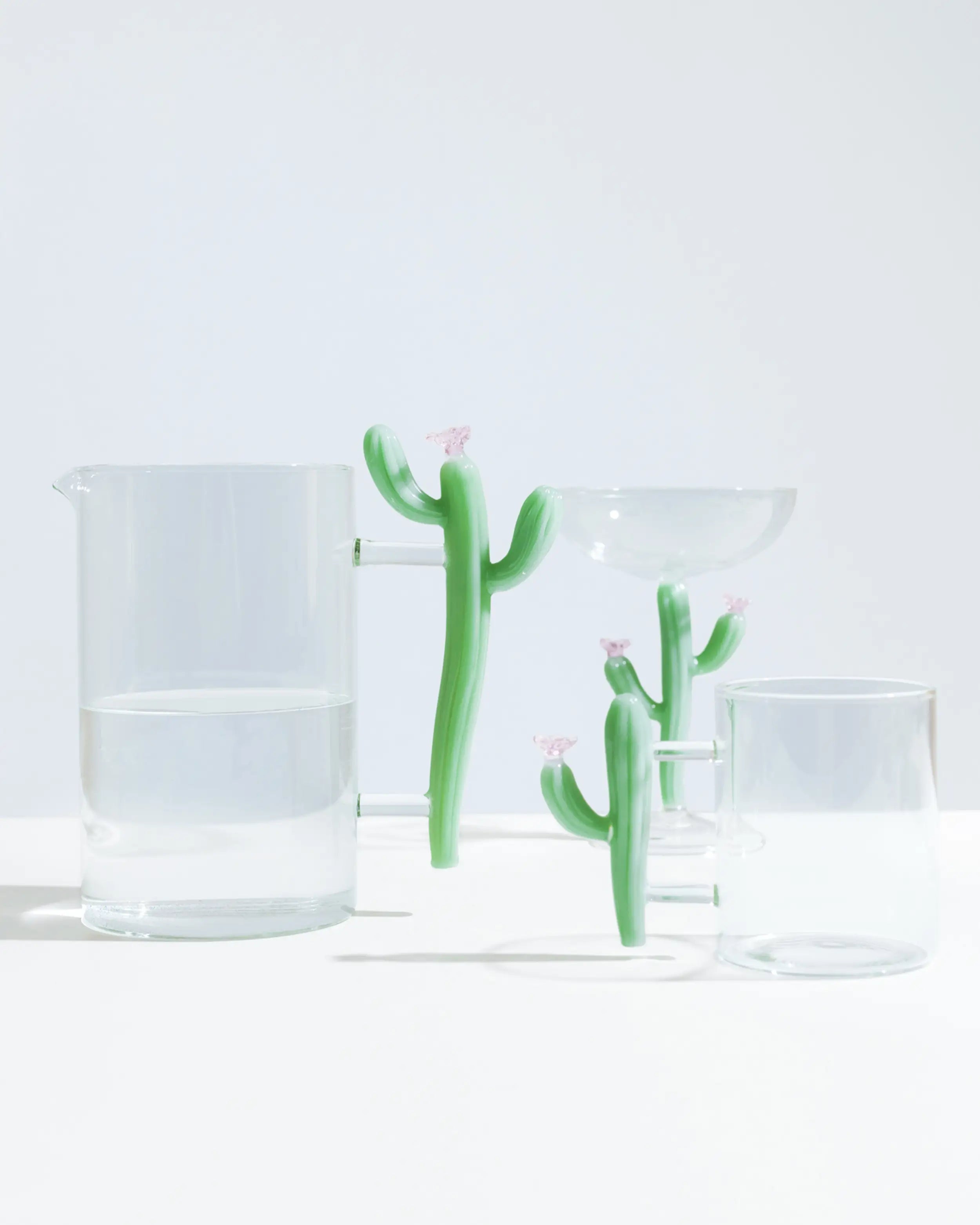 This pitcher belongs to the enchanting Desert Plants collection, a line that brings desert flora to life through glass. It pairs beautifully with the Ichendorf bottles, the vibrant world of the brand’s iconic tumblers collection, and the imaginative world of the Botanica collection. Together, they create a unified language of color and form, perfect for those who love to curate a table that feels both modern and full of personality.