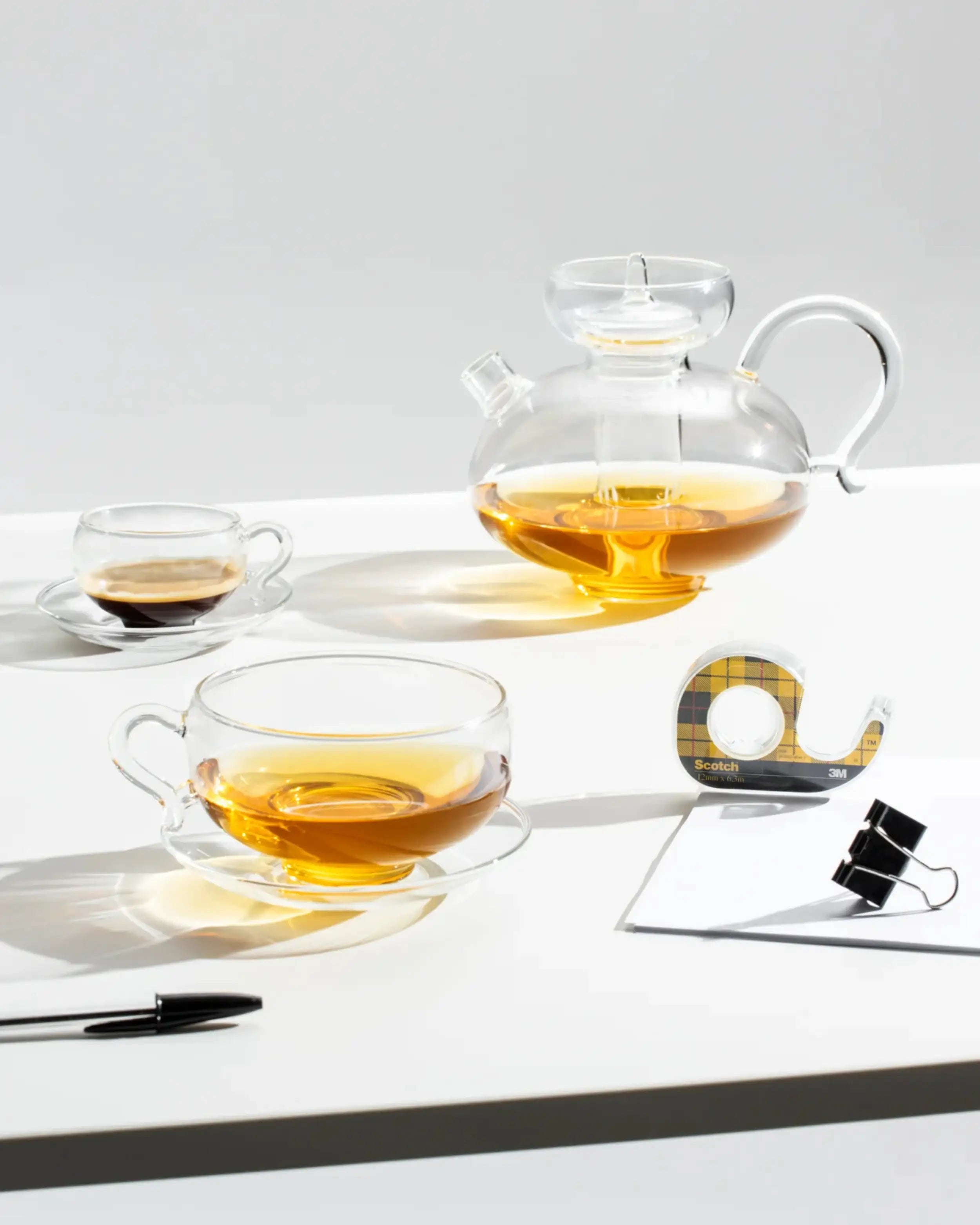 Guidone’s Kamakura series is deeply influenced by Japanese aesthetics, where simplicity is not an absence but rather a heightened presence of balance, silence, and space. The teapot embodies this principle. Made from borosilicate glass, it is surprisingly strong while remaining delicate and light in the hand. Resistant to thermal shock and designed for everyday use, it shows that fragility and durability can coexist in a single object. By eliminating superfluous details, Guidone reveals the essence of function and beauty, letting form follow purpose with poetic restraint.
