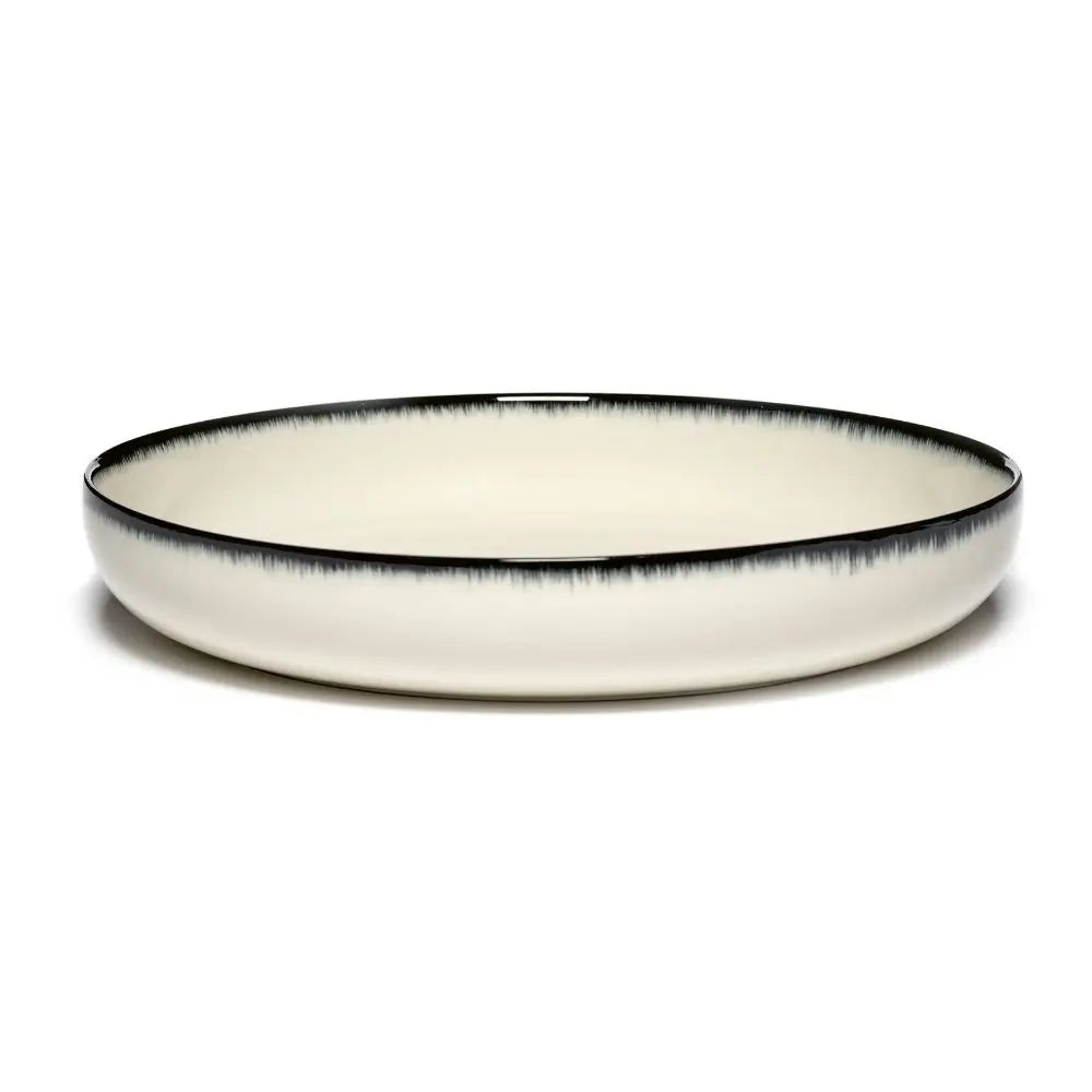 Each plate in this variation is hand painted, which ensures subtle irregularities and nuanced surfaces. The interplay of off-white backgrounds with bold black accents makes every piece unique, reinforcing the Serax’s identity as a study in chiaroscuro. Fully dishwasher safe and designed for alimentary use, it integrates practicality into a design that feels closer to art than utility. For those seeking a serax dé deep plate a, this model captures the strength of deliberate imperfection, elevating everyday meals into curated gestures.