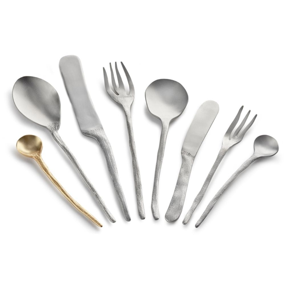 True to its role in a larger collection, the Serax Flora Vulgaris dessert cutlery interacts beautifully with plates and bowls from the same series. The slightly irregular form creates contrast against smooth porcelain or ceramic, while rustic wooden trays highlight its artisanal feel. On contemporary linen settings, it becomes a delicate accent that completes the mise-en-place. Search queries like luxury Serax forks or exclusive Roos Van De Velde tableware reflect the fork’s ability to integrate into multiple dining styles, reinforcing its position as a versatile yet elegant choice.The beauty of asymmetry