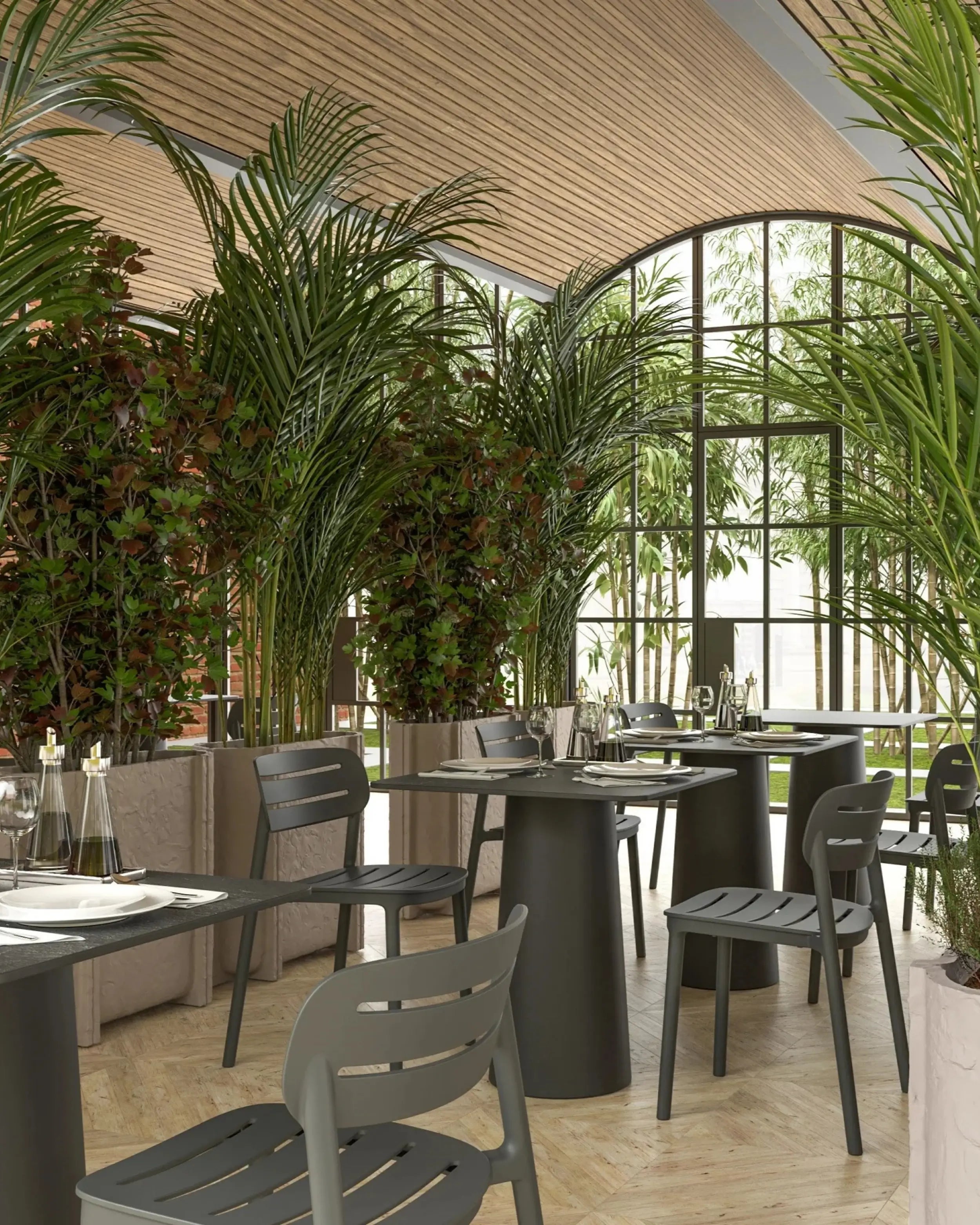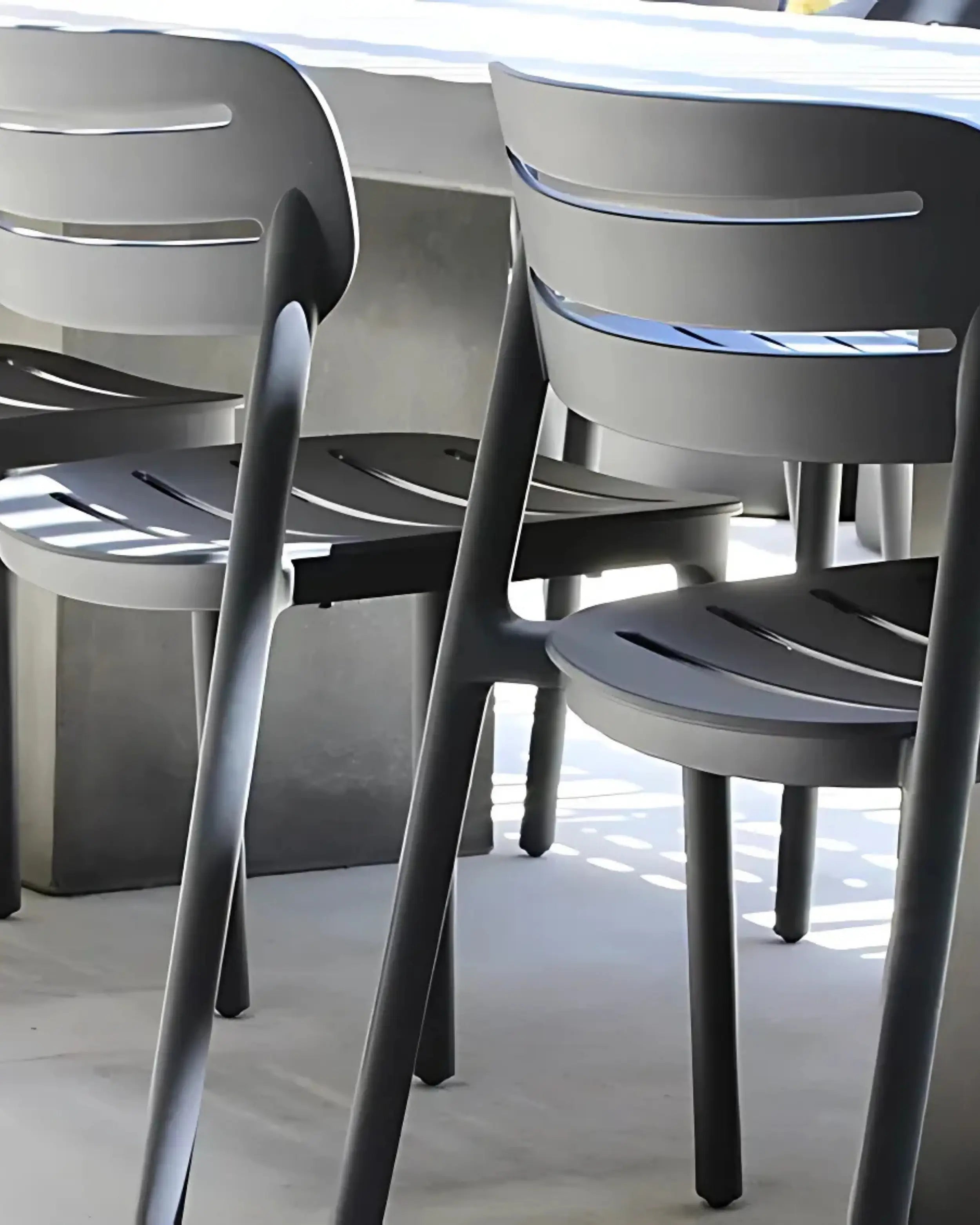 Despite its delicate profile, Serralunga's Croisette is built for resilience. Crafted in high-quality polyethylene, it withstands impacts, UV exposure, and temperatures ranging from -35°C to +80°C. Its 100% recyclable, solution-dyed body ensures long-lasting vibrancy, even under direct sunlight. Maintenance is minimal: a damp cloth with mild soap is enough, while lacquered finishes offer added refinement. This combination of durability and aesthetic appeal makes it a sustainable choice for both residential balconies and commercial outdoor areas.