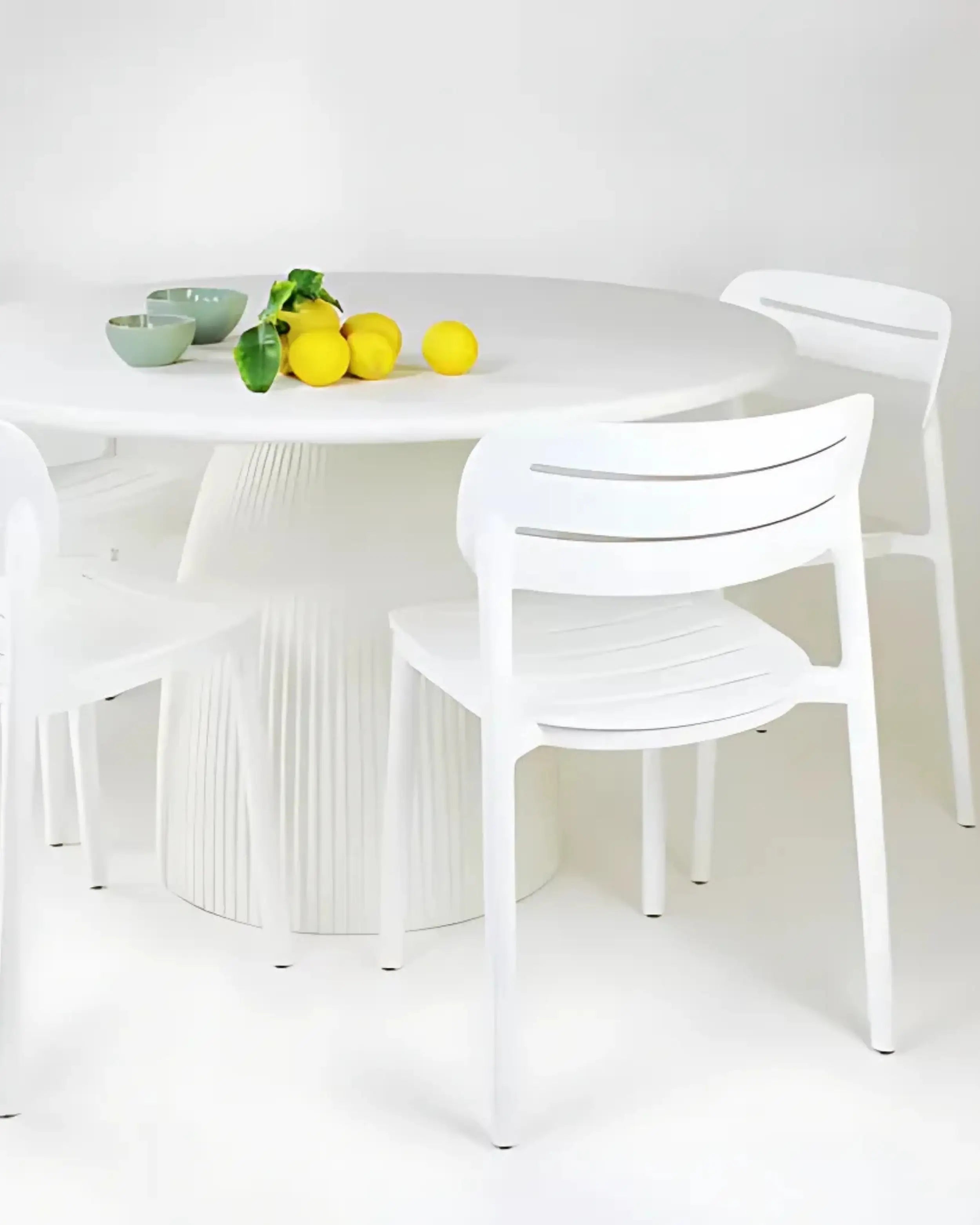 The Croisette is offered in mint, cappuccino, white, and anthracite; each tone highlighting a unique aspect of its design. Mint brings freshness and playfulness, cappuccino adds warmth, white emphasizes modern clarity, and anthracite underscores structural strength. This versatility allows the chair to complement private garden corners, rooftop terraces, and hospitality lounges alike, always providing the right atmosphere.
