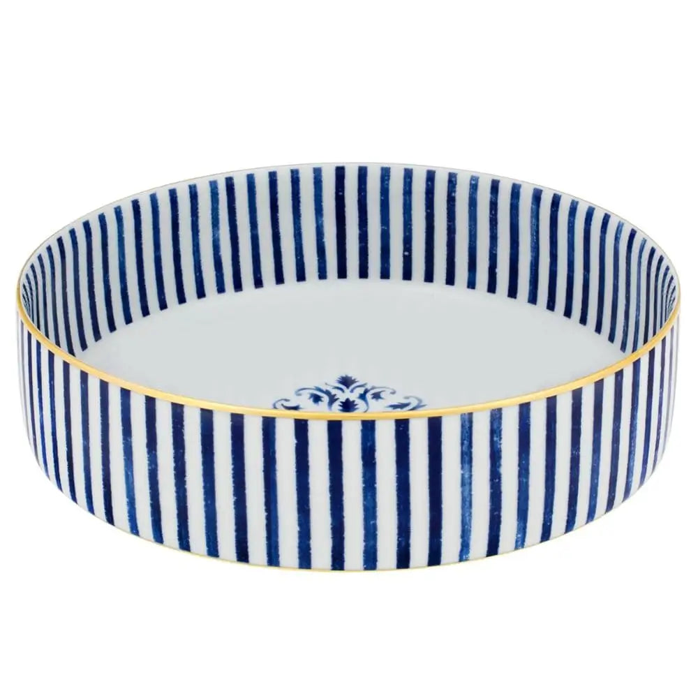 The presence of gold detailing requires attentive care to preserve its brilliance and integrity over time. The bowl is not suitable for microwave use, and cleaning is recommended through short, low-temperature dishwasher cycles, avoiding frequent repetition to maintain the decorative finish. This approach ensures that both structure and surface retain their original quality, allowing the piece to remain visually striking through continuous use. For those seeking the best luxury bowls and salad bowls or looking to buy Vista Alegre Transatlântica large salad bowl online, it represents a refined synthesis of scale, craftsmanship, and enduring elegance.Vista Alegre Transatlântica large salad bowl diam. 28.5 cm - 11.22 in