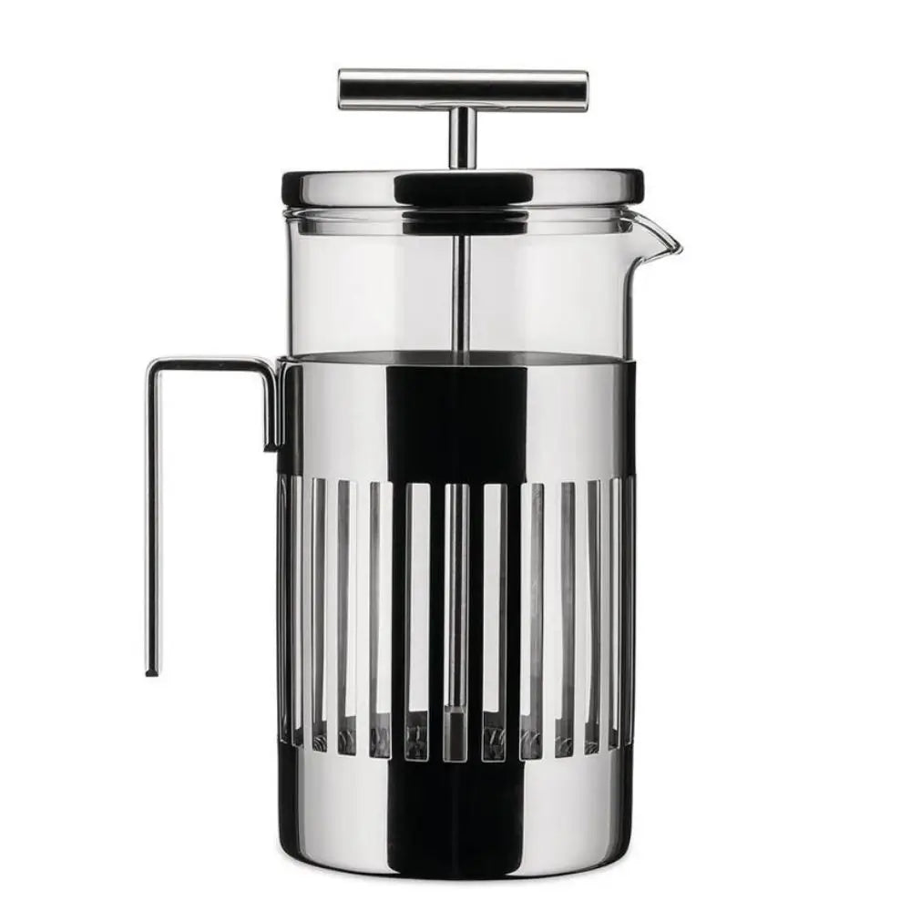Alessi 9094 壓濾咖啡壺或鋼製浸泡器 將您的晨間咖啡轉化為一場設計體驗。作為 Alessi 咖啡壺 類別中的精緻之作,這件作品融合了建築嚴謹與日常功能性。無論用來沖泡濾泡咖啡、草本茶或芳香浸泡飲品,都能以精準、優雅及一絲永恆魅力完成。
