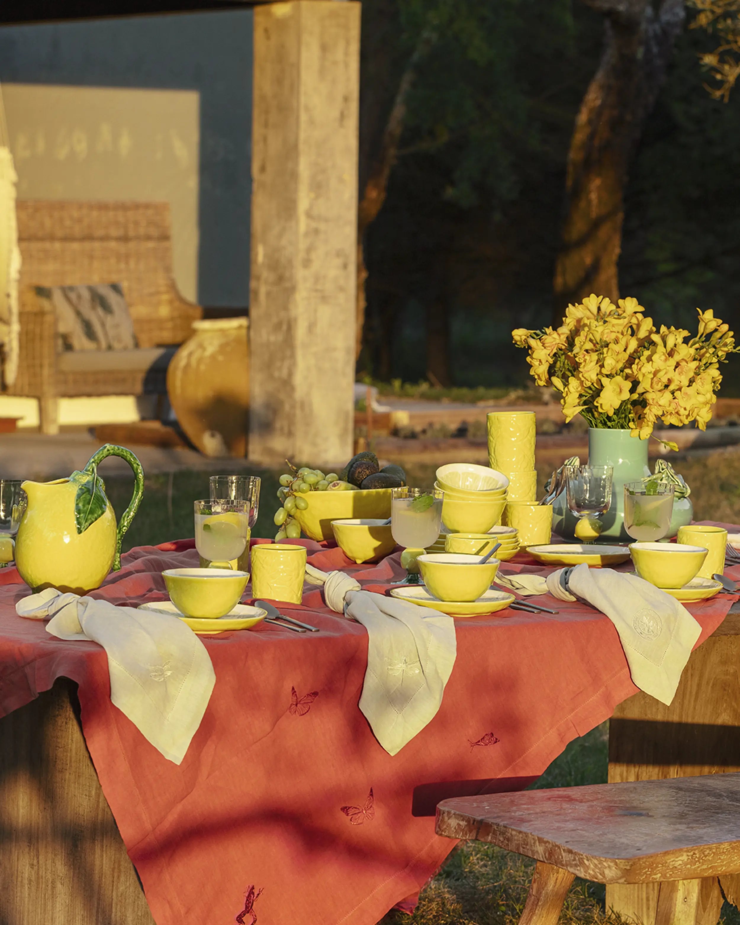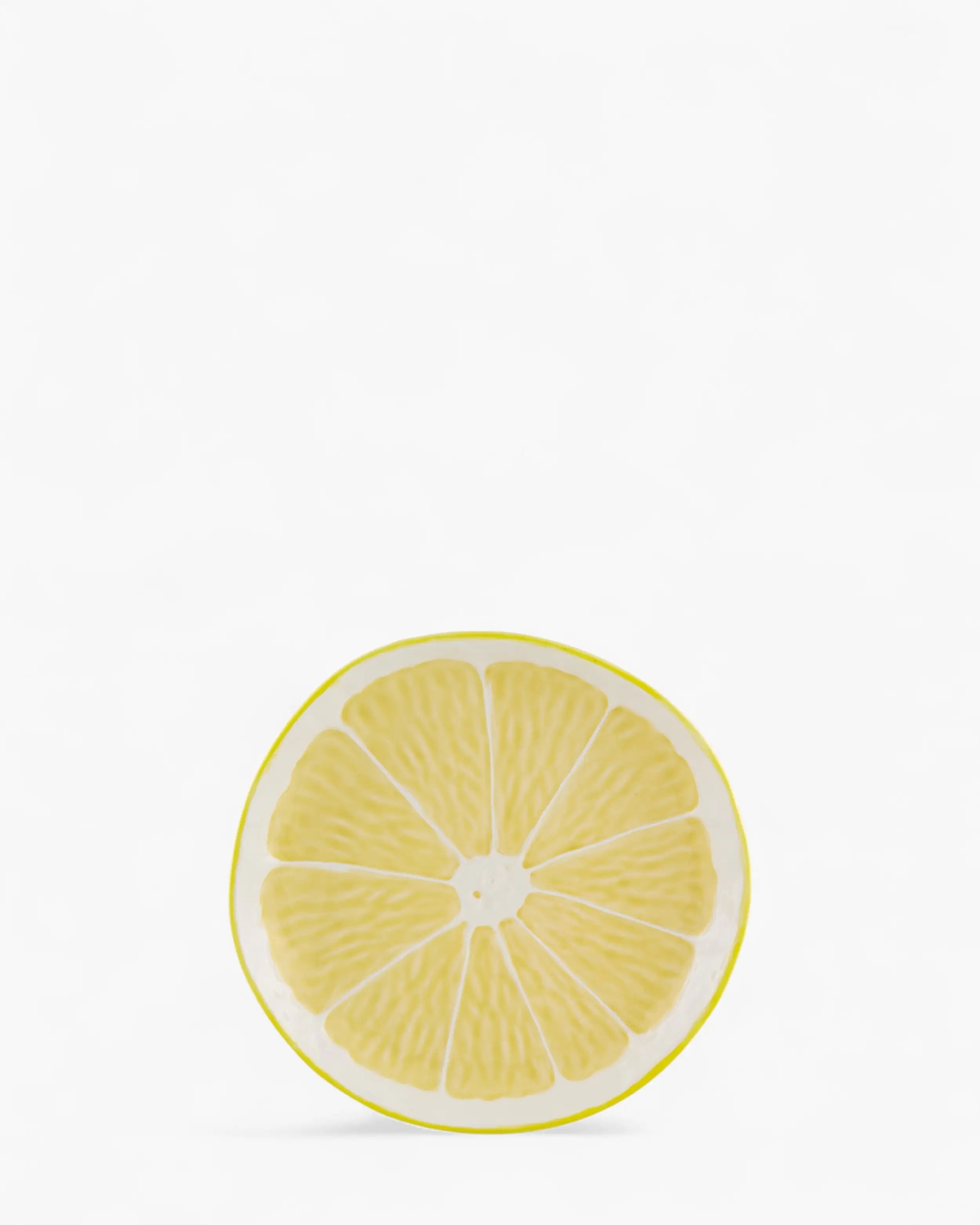 Lemon fruit plate 適用於多種場合:它可搭配同系列的 沙拉碗、水壺 和托盤,亦可作為 裝飾點綴品,擺放於玄關桌或牆面。其多功能性使其適合輕鬆的家庭用餐及節慶聚會,始終帶來愉悅的設計感。