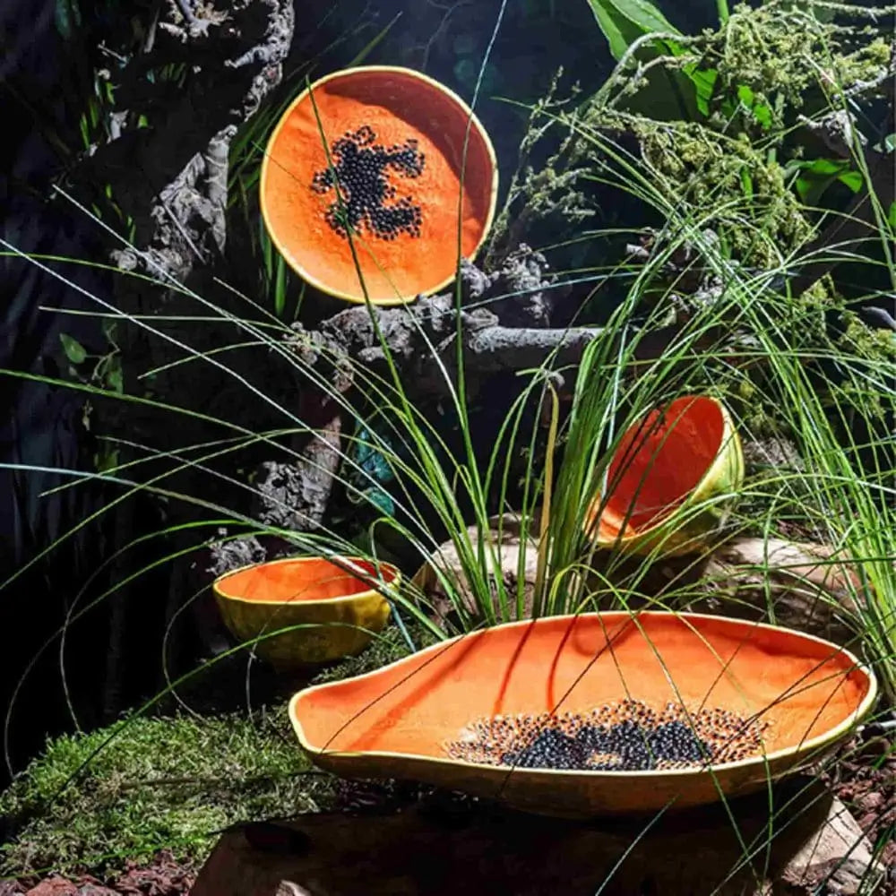 提供多款設計:牛油果、椰子、猕猴桃、百香果、木瓜及火龙果,熱帶水果系列展現了一場色彩與質感的交響曲。每只異國水果陶瓷碗的表面模仿自然紋理的豐富:牛油果的柔和綠色、木瓜的鮮橙色、火龙果的深洋紅色。每種變化都講述著一個視覺故事,激發好奇與對話。無論是展示或使用,這些碗都為現代室內與精緻餐桌布置帶來溫暖與異國風情。