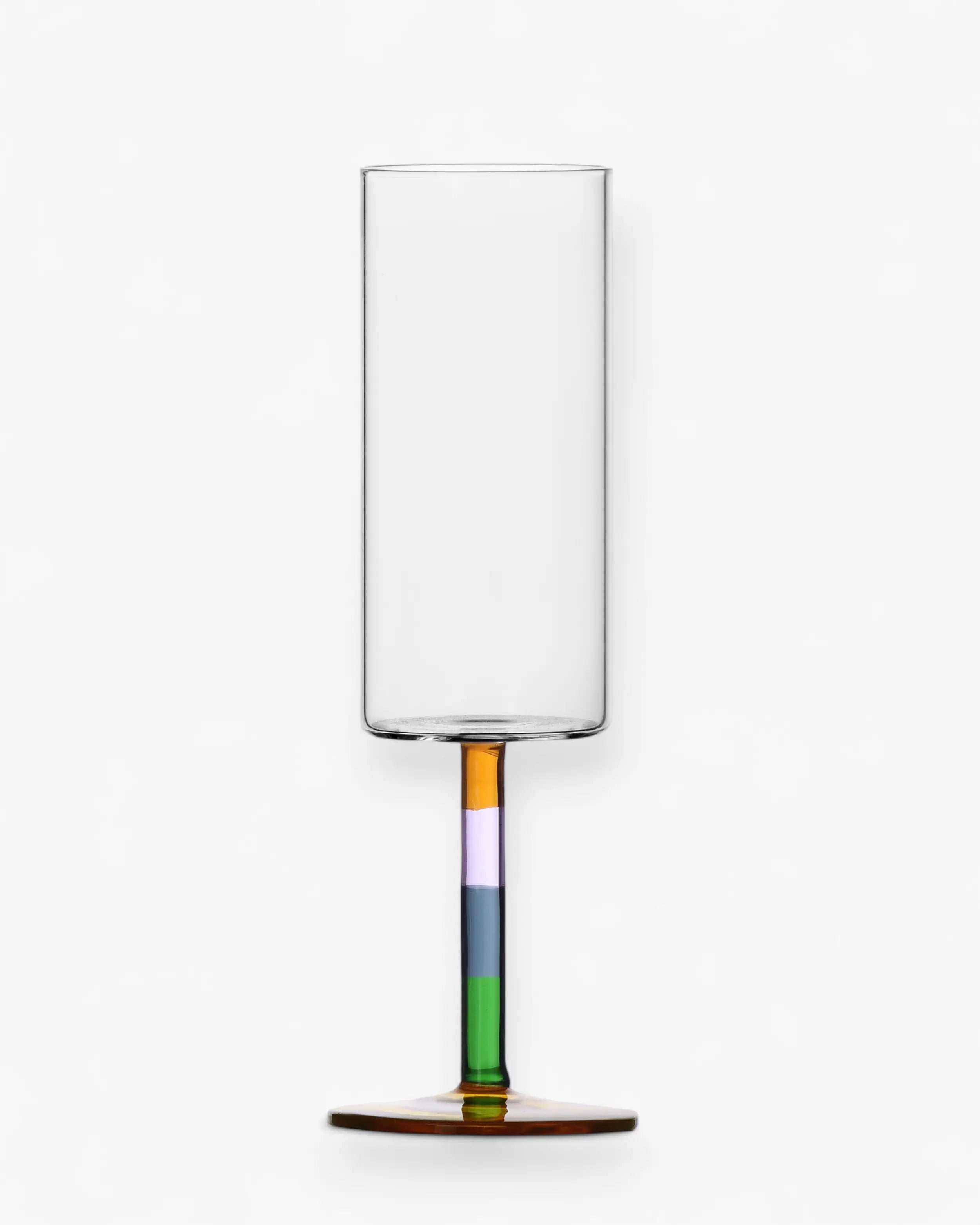 Each flute is handmade and lampworked in borosilicate glass, chosen for its clarity, resistance and feather-light weight. The technique leaves subtle variations that make every piece one of a kind. Created for alimentary use, it respects the character of the wine while offering visual brilliance. Practicality meets refinement in a design that is dishwasher safe at low temperatures (40 °C/104 °F recommended), ensuring long-lasting transparency. Through this artisanal process, the glass maintains a perfect dialogue between craftsmanship and modern elegance.
