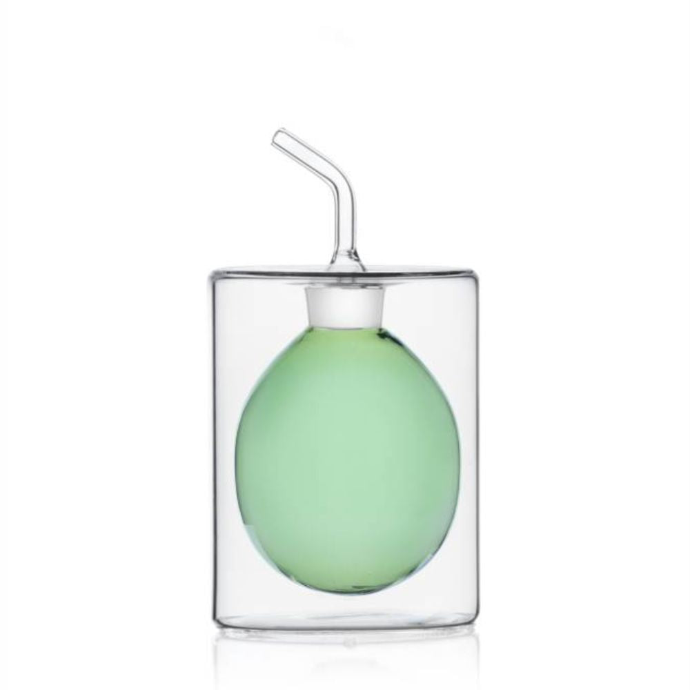 The colourful glass dispenser stands out for its chromatic delicacy, ideal for those who view the kitchen as a place of creativity and harmony. More than a simple vessel, it is a modern kitchen accessory crafted to preserve and enhance the natural qualities of olive oil. Its handmade character speaks of slow craftsmanship, while its minimalist lines recall the precision of industrial design. Whether displayed on the countertop or brought to the table, the borosilicate glass oil cruet radiates sophistication through simplicity.