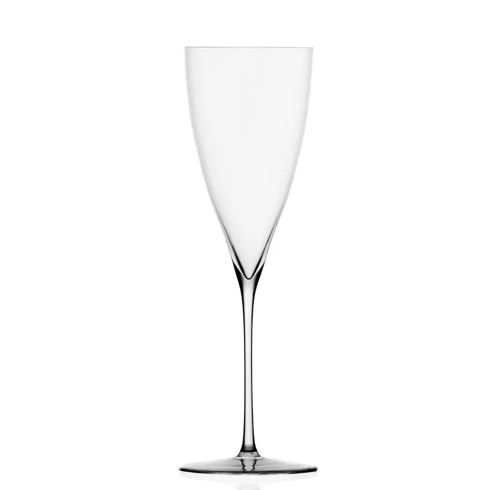 Ichendorf Solisti flute smooth 將氣泡酒的服務提升至晶瑩剔透的本質層次。由 Marco Sironi 設計,這款 28 cl 手工吹製長笛杯體現了 Solisti 的理念:每只酒杯皆圍繞單一表演者的個性而塑造。在此,表演者即是氣泡本身。高挑纖細的杯身延長了氣泡上升的過程,展現 Prosecco、香檳、Franciacorta 或現代氣泡混釀的每一絲細節。輪廓刻意保持簡潔且連貫,讓光線自由穿透酒杯,使飲品彷彿懸浮於一柱清澈之中。