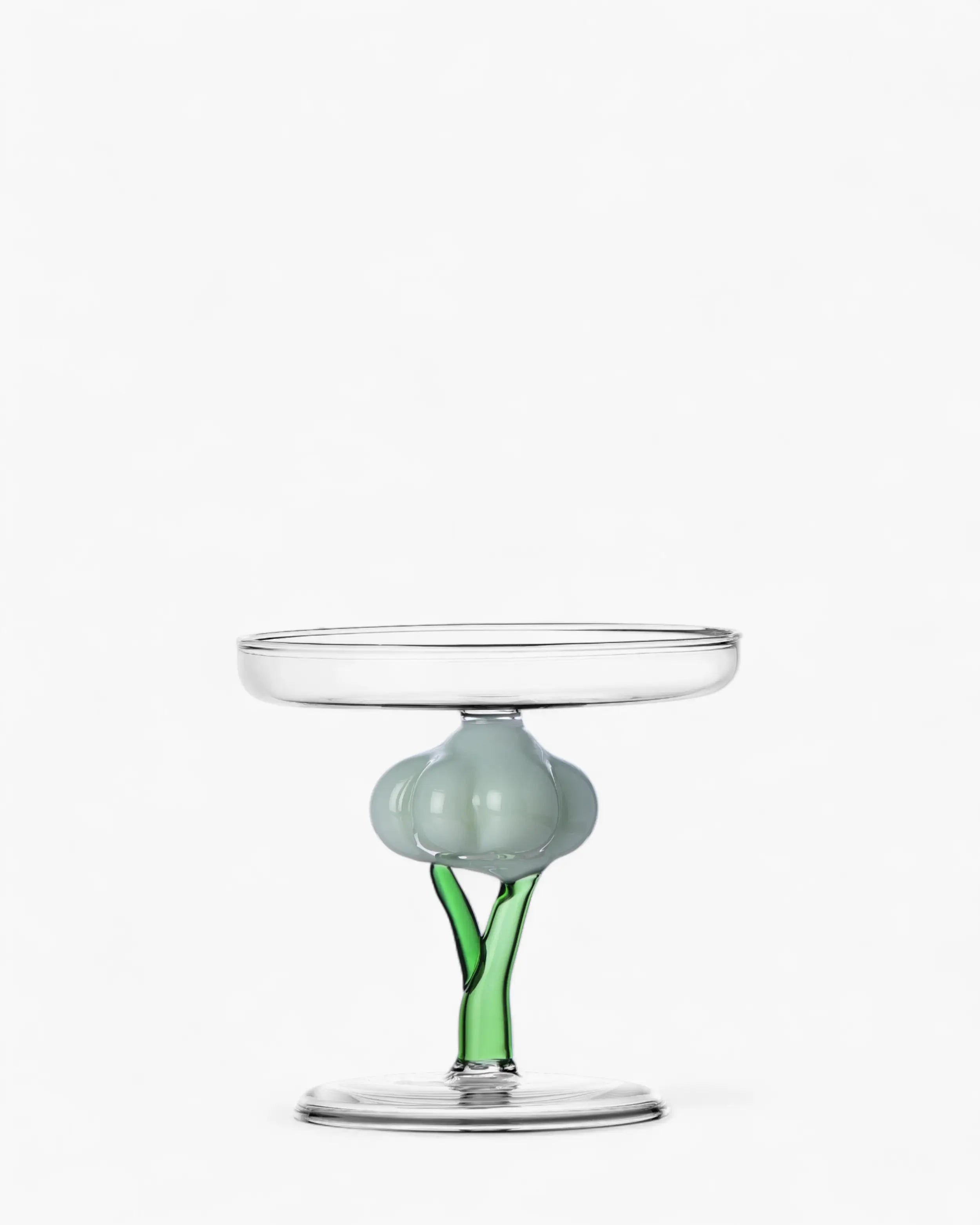 Made from handmade and lampworked borosilicate glass, the Vegetables footed plate reveals the meticulous craftsmanship that defines the entire Ichendorf collection. Flame-working techniques allow artisans to carve out precise curves, giving the plate its distinctive raised form and airy lightness. Despite its sculptural look, the borosilicate glass structure ensures durability and resistance to daily use. Dishwasher safe at low temperatures, it maintains its clarity and fine details over time, making it suitable for both everyday gestures and more festive presentations.