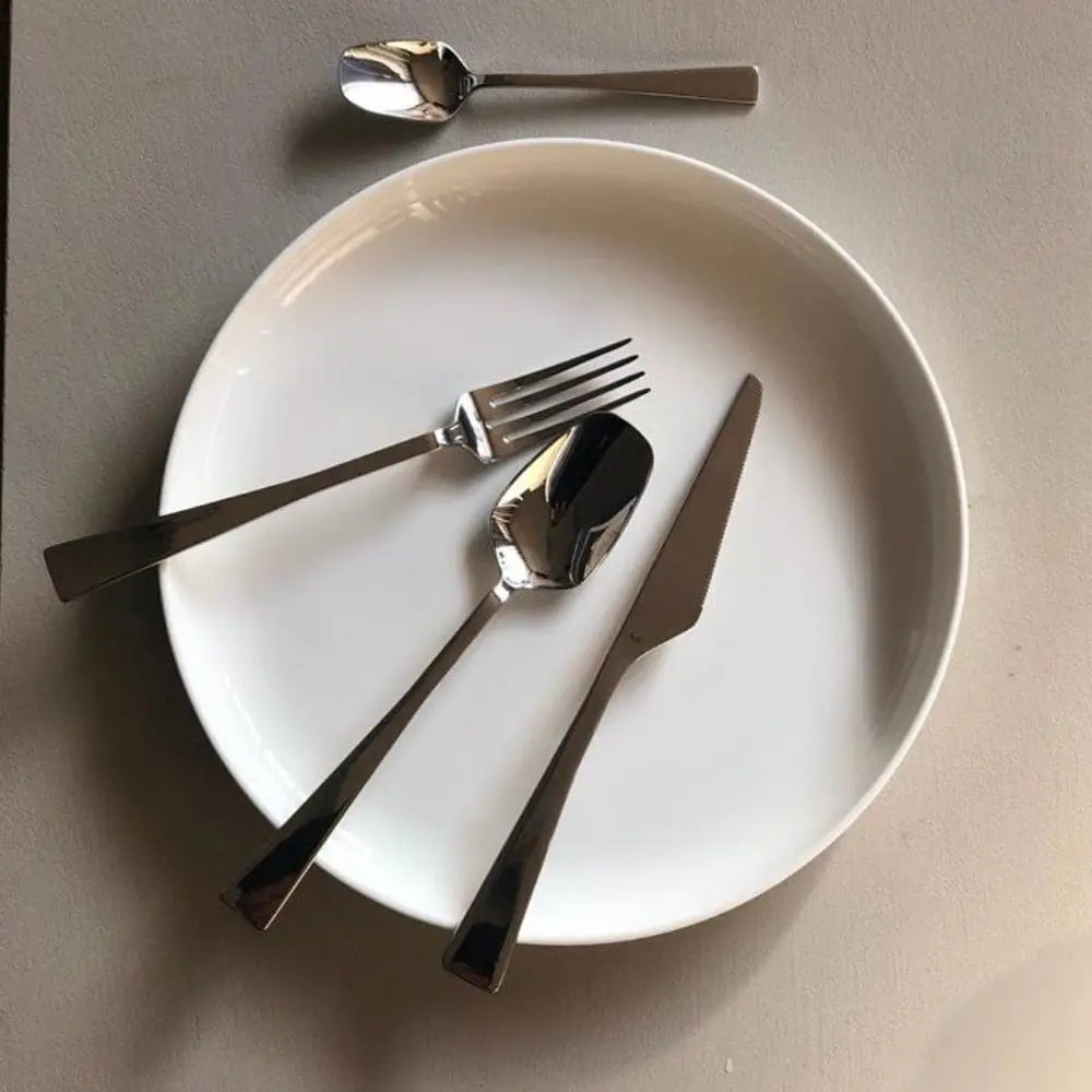 由高品質鋼材打造,Zest Set 24完美展現了KnIndustrie精神中的卓越。每件餐具都經過精確的平衡與重量設計,讓您握持舒適,享受無瑕的用餐體驗。套組包含6把餐匙、6把餐叉、6把餐刀及6把茶匙——全部設計用於食用用途且完全可用洗碗機清洗。無論是日常用餐或特殊場合,這裡是創新與傳統在餐桌藝術上的完美結合。