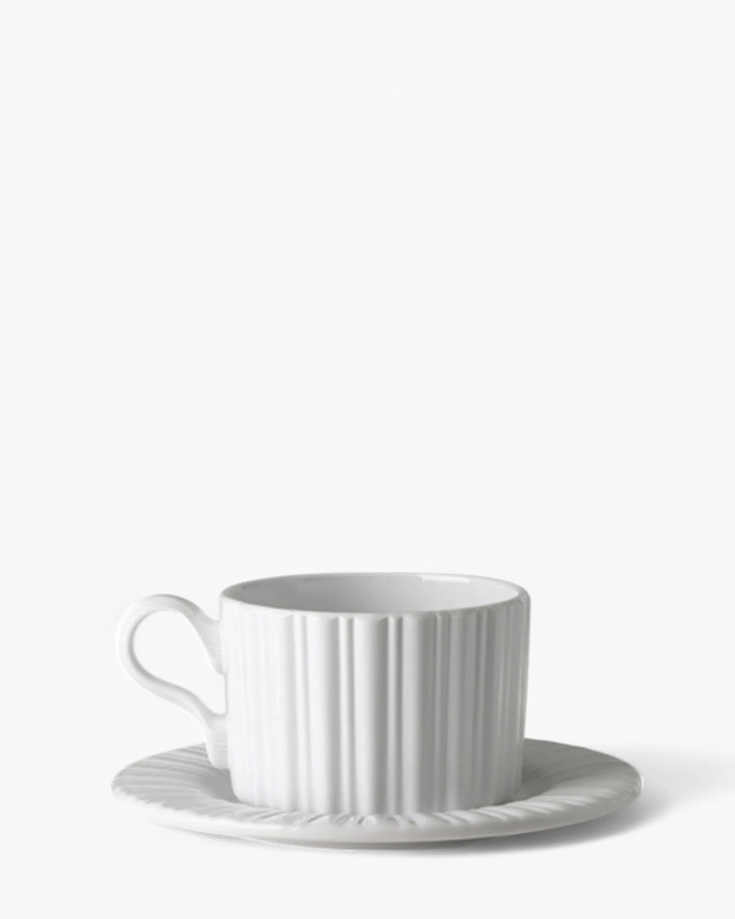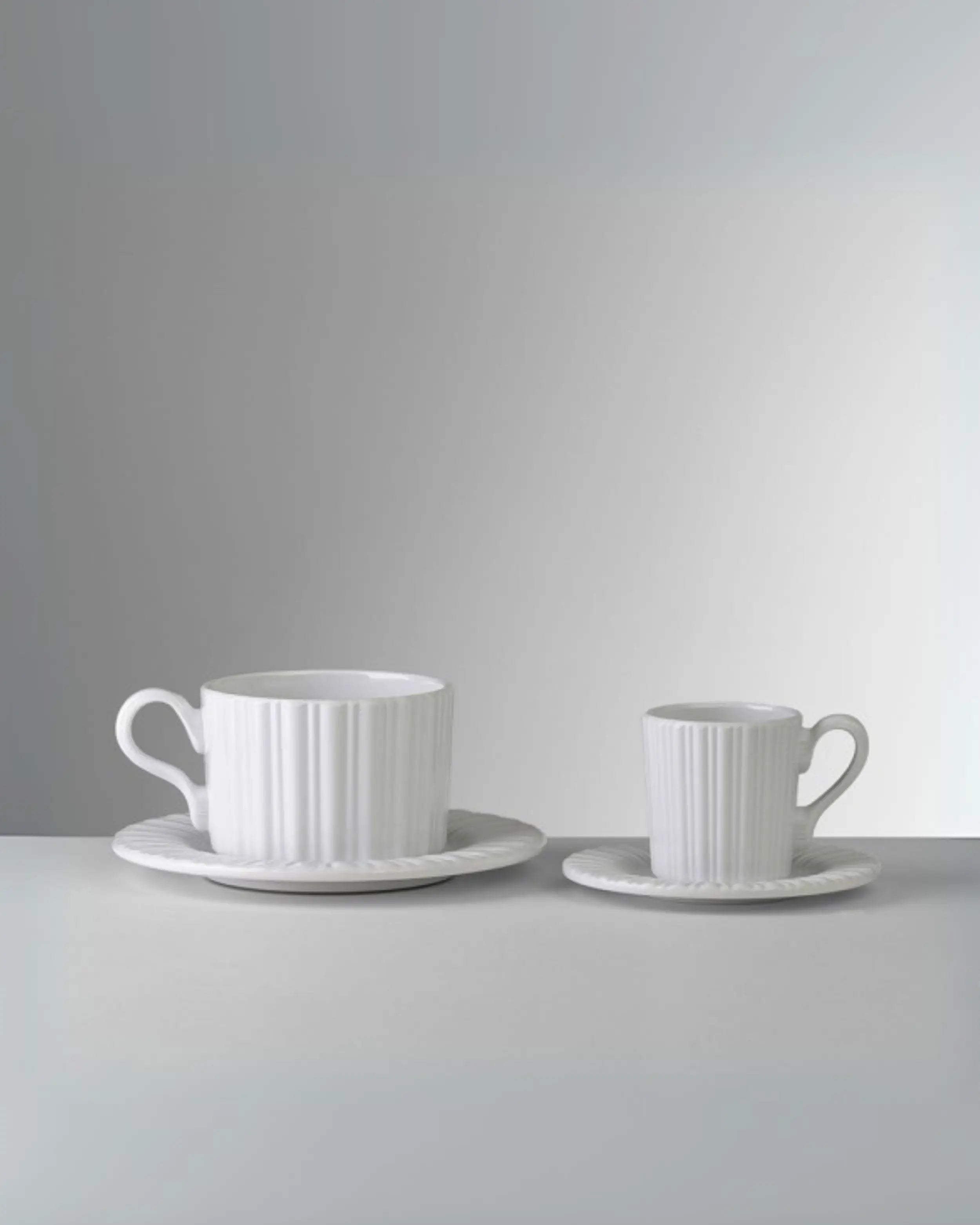 Tea Time杯系列將瓷器的魅力帶入現代風格。提供象牙白茶杯組或鮮豔色調,與Mario Luca Giusti設計師玻璃杯、優雅的盤子與餐墊及同品牌托盤相得益彰。其均衡的比例使其成為理想的現代茶杯與碟,完美適合喜愛每一口都低調奢華的人士。它也呼應了Mario Luca Giusti的理念,打造完整的餐桌風貌。