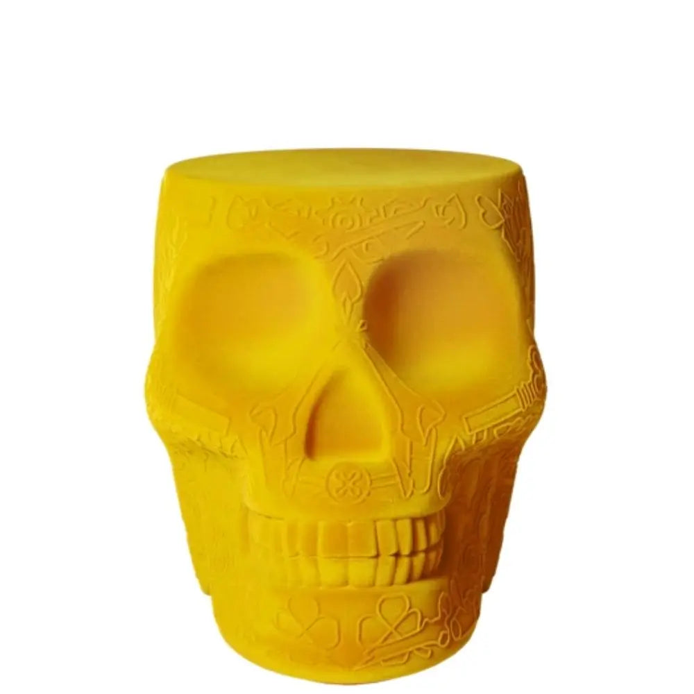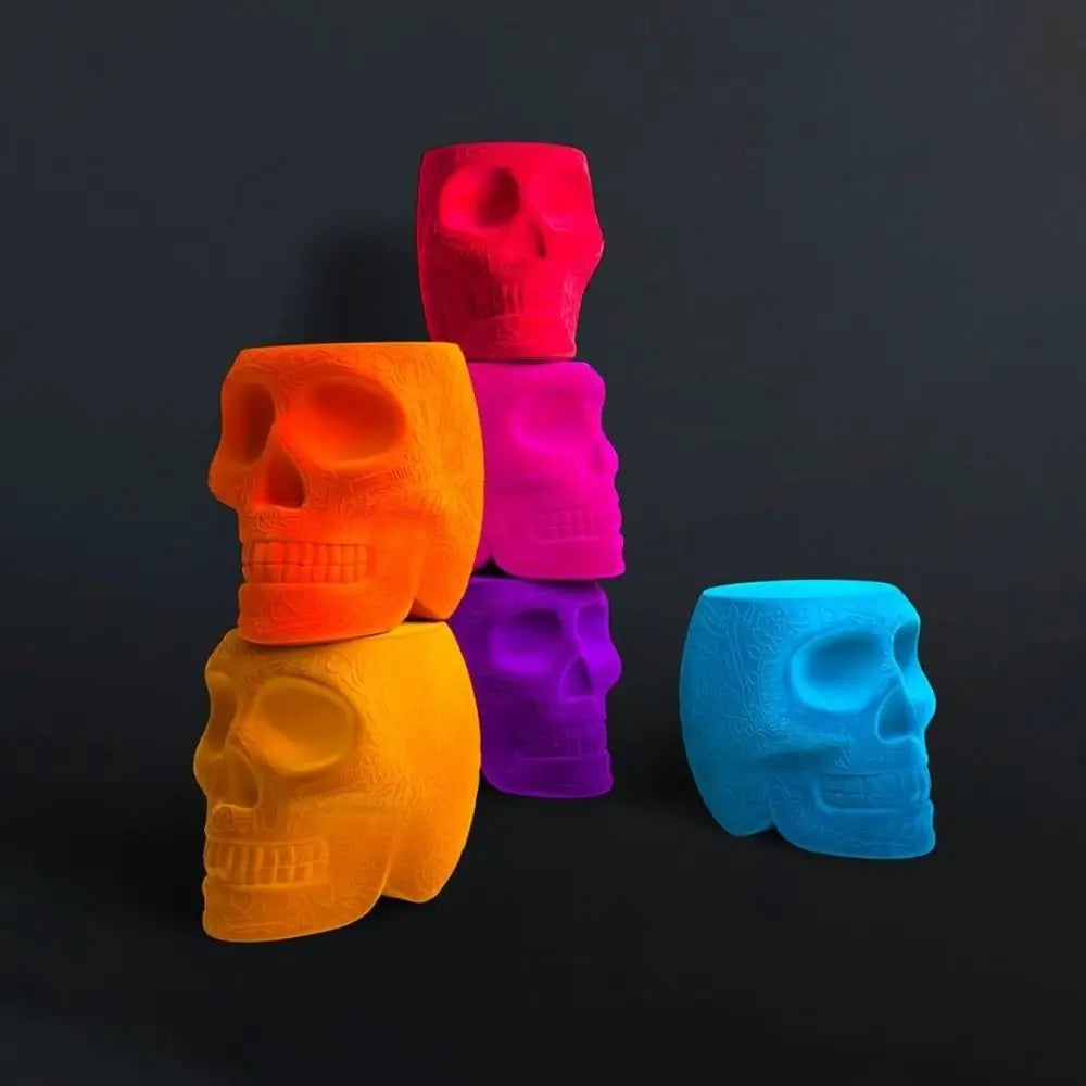 Qeeboo Mexico 絨面凳提供深絨面黃金、絨面橙色 、紅色絨面、絨面紫紅色、絨面紫色及綠松石絨面等豐富色彩選擇,旨在為室內空間注入活力。每種膚色都以不同方式強調骷髏的輪廓,使作品能根據擺放位置從大膽焦點轉變為精緻點綴。這些塗裝使其成為折衷風格室內、當代空間及以膚色為核心氛圍定義的環境的理想選擇。