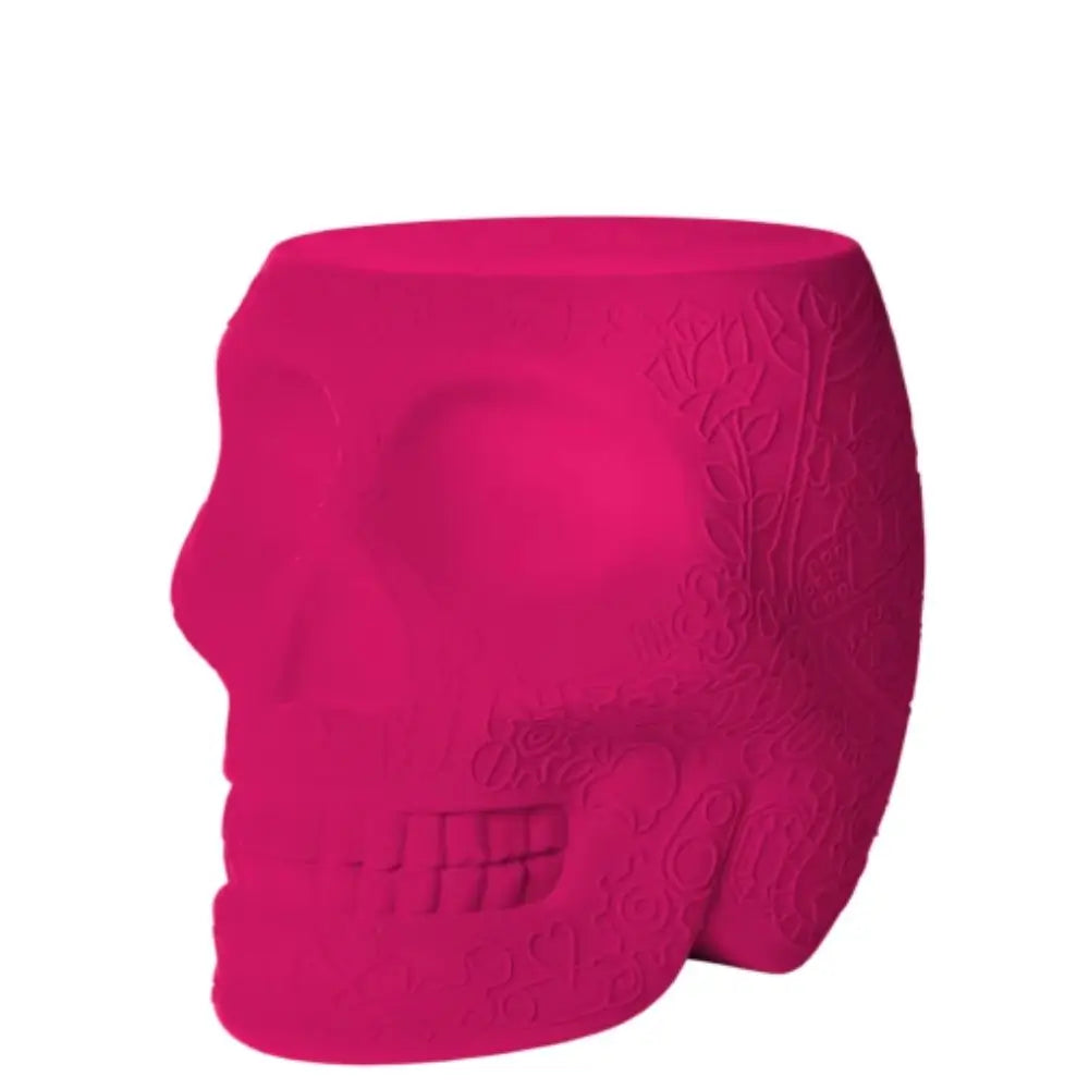 Qeeboo Mexico 凳子與邊桌絨面款體現了定義Studio Job x Qeeboo合作的設計與材質實驗之間的表現性對話。它納入了Qeeboo 座椅系列,並與Qeeboo 桌子系列相呼應,代表當代裝飾的勇敢詮釋。對於尋求結合雕塑形態、豐富膚色與觸感精緻的購買 Mexico 絨面作品者,此絨面骷髏呈現獨特且無可錯認的設計風采。
