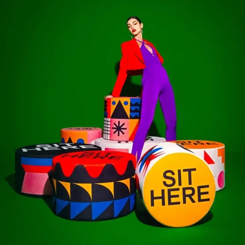 由Marco Oggian設計,他的美學融合幾何、流行象徵與文化參照,這款坐墩展現了Marco Oggian x Qeeboo合作的動態身份。標誌性的sit here pouf圖案成為當代室內空間中的大膽視覺標記,將坐下的行為轉化為一種趣味宣言。作為一件藝術坐墩設計,它在插畫與物件之間架起橋樑,保持Oggian獨特的圖像節奏於三維形式中。