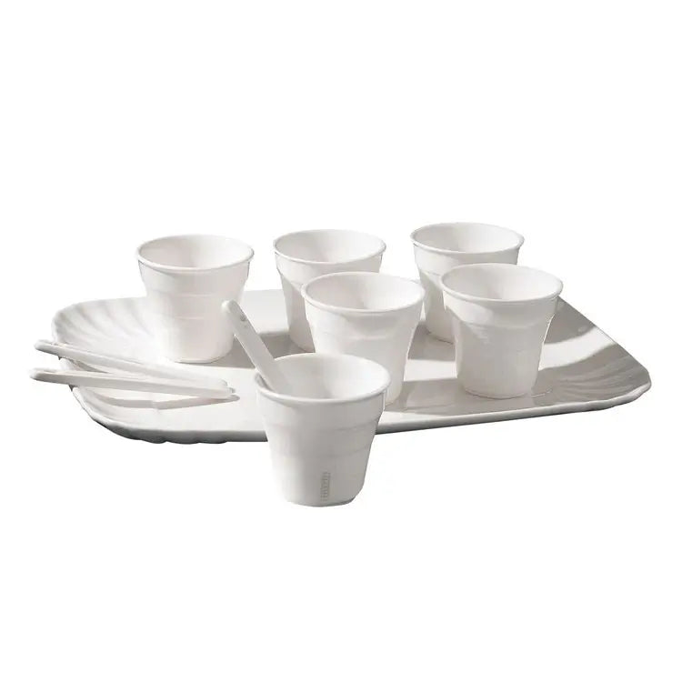 這款精緻的咖啡組包含杯子、咖啡匙及搭配的托盤,設計用以襯托每一張餐桌。適合食用用途,結合實用性與美學價值,提升每一次的供應時刻。提供兩種款式:2件組或6件組,完美適應各種場合,從親密的早餐到熱鬧的晚餐聚會。每個細節皆反映了Seletti的信念:設計應提升日常生活中最平凡的時刻。