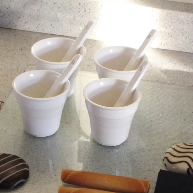 由高品質的瓷器製成,Seletti Estetico Quotidiano 咖啡組由Alessandro Zambelli設計,展現純淨與耐用的完美結合。其光滑的表面與柔和的曲線增添飲品的溫暖感,而材質的韌性確保長久使用。瓷器在此不僅是媒介,更是一種訊息,提醒我們美麗也可以是實用、觸感良好且令人安心的。其中性色調使其成為任何用餐環境中永恆的搭配。