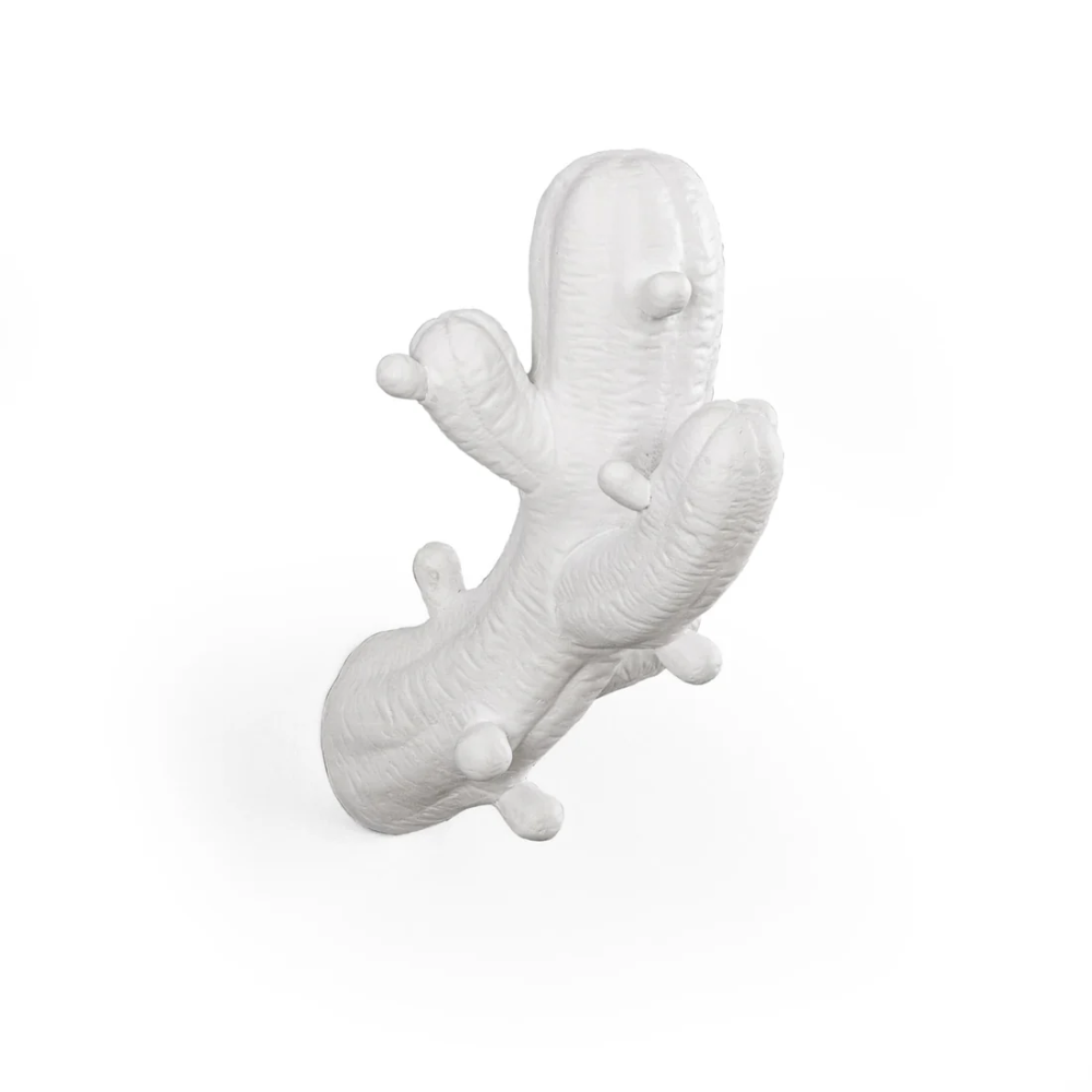 Crafted in premium resin, the Seletti Hangers Cactus combines sculptural detail with durability. The material enhances every curve and texture of the design, capturing the essence of the plant’s geometry without losing its softness. The smooth surface and vibrant color options, acid green or white, make it a striking addition to any interior. Resistant, lightweight, and tactile, the resin brings a contemporary edge to an object that’s as decorative as it is functional.