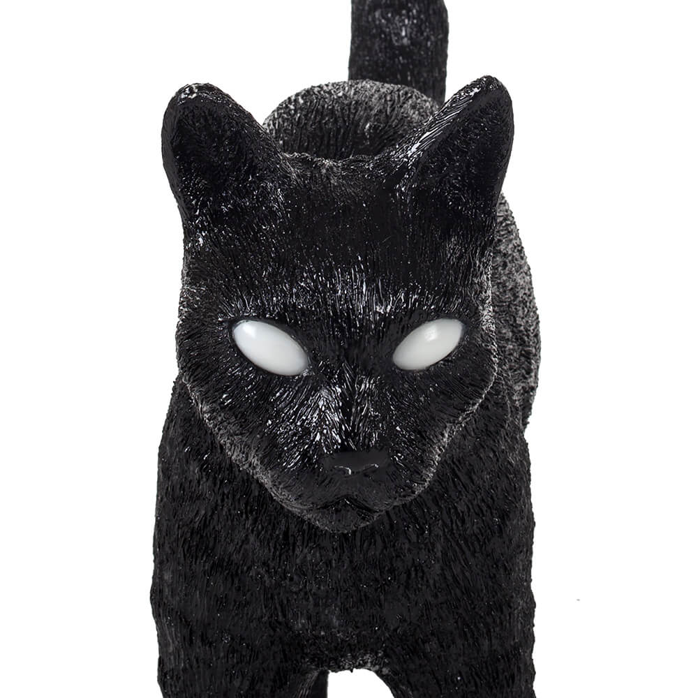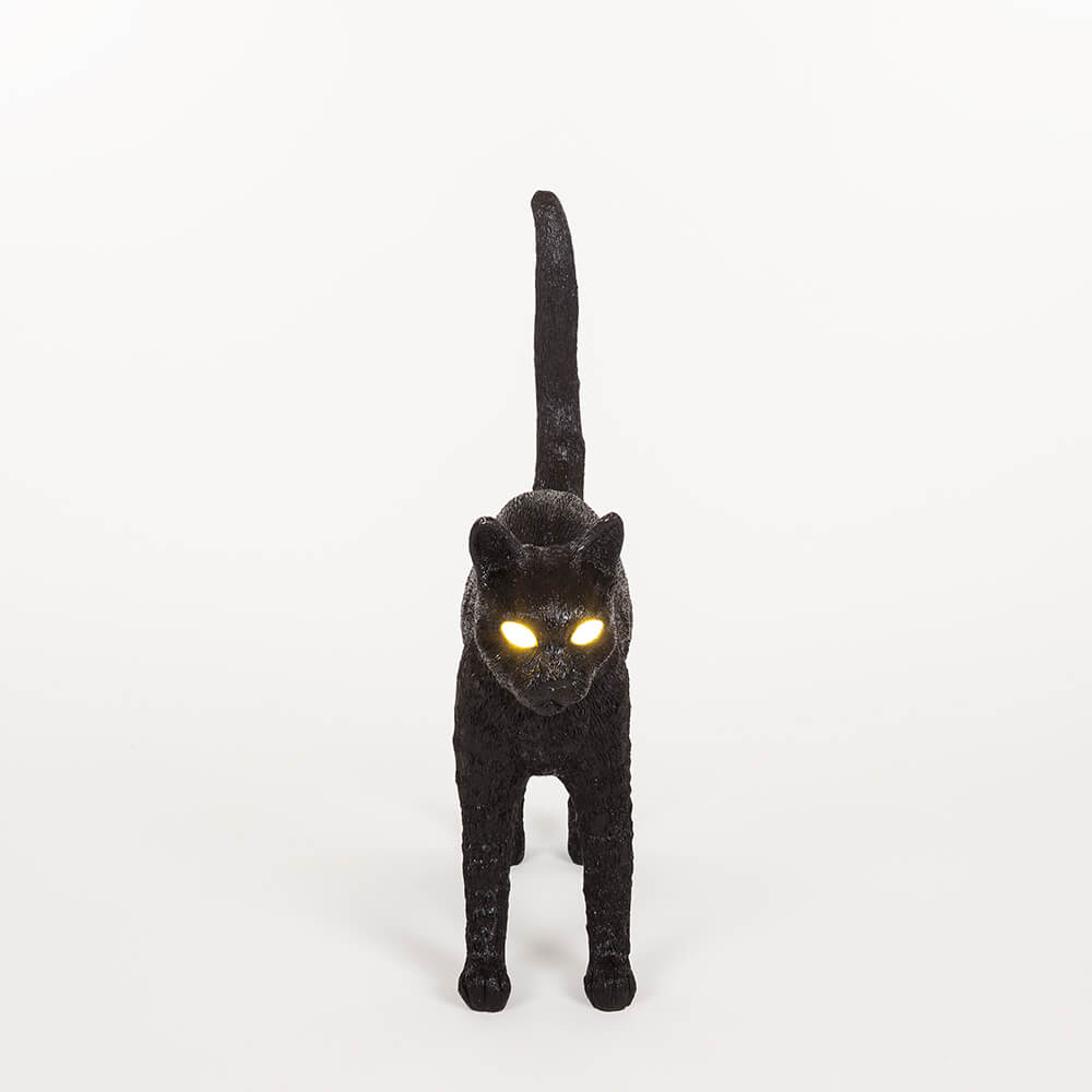 Part of the irreverence of Jobby The Cat lies in its unapologetic theatricality. Studio Job has always rejected the predictable, and here the designers insert humor directly into the user experience: the golden switch-dimmer placed between the hind legs, a detail intentionally provocative, becomes a playful interaction rather than a simple function. Behind this irony lies a surprising degree of practicality: the internal LED circuitry ensures efficient brightness without overheating, the resin body makes the lamp lightweight yet durable, and the USB charging port hidden beneath the tail blends seamlessly with the sculptural silhouette. As a modern home décor lamp, it works beautifully on bedside tables, shelves, office desks or even in retail displays where a touch of eccentricity enhances the ambiance. The black version adds sophistication and intensity, making it ideal for contemporary interiors, creative studios or eclectic living rooms.More than illumination: a narrative object that transforms every corner