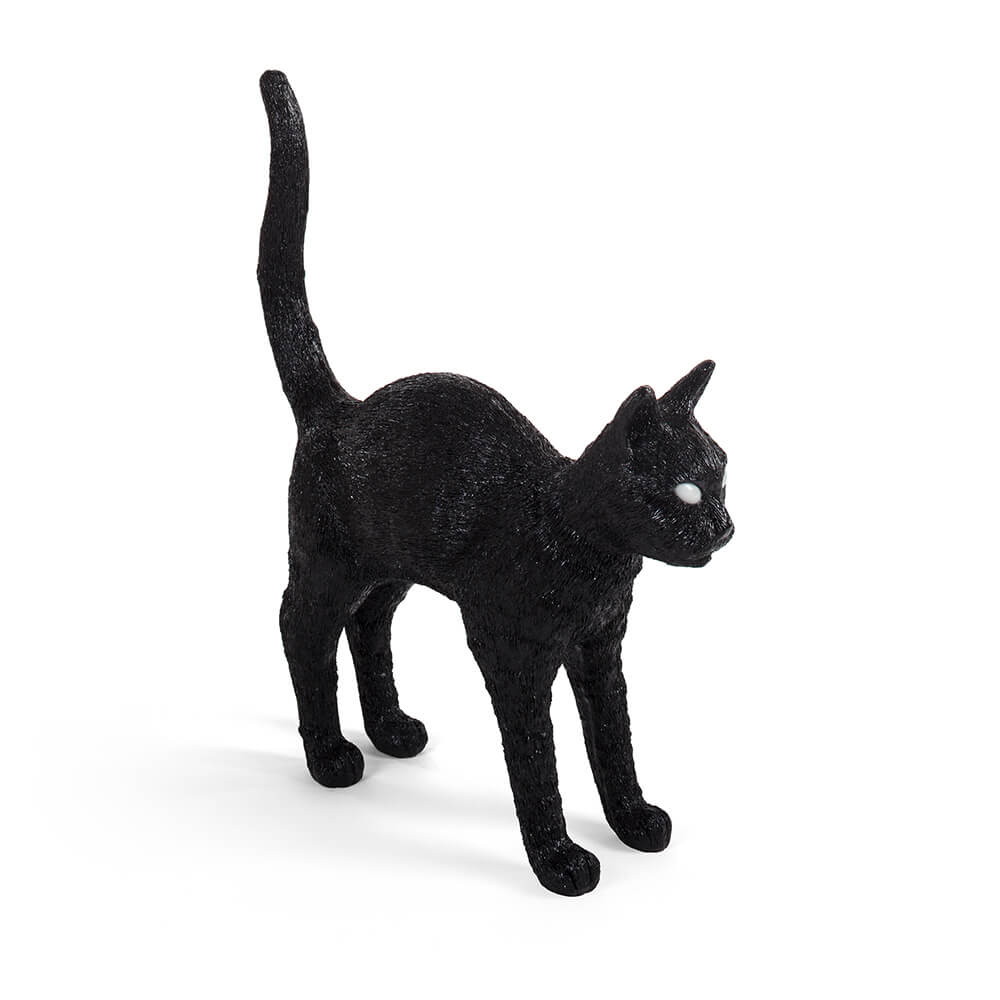 To buy Seletti Jobby The Cat is to bring into your space a design piece that operates on multiple emotional levels. Its light is soft yet directional, perfect for late-night reading or for atmosphere building. Its presence, however, is what truly elevates it: with its upright posture and piercing LED gaze, it becomes a guardian, a character, a conversation starter. As part of the broader Seletti's Lighting collection, the lamp embodies the brand’s mission to challenge expectations through bold aesthetics and clever narrative design. Whether chosen as a functional wireless lamp, a statement sculpture or a collectible object for design enthusiasts, Jobby The Cat black transforms ordinary environments into theatrical stages. Seletti, as always, disrupts the familiar with wit, emotion and craftsmanship, offering pieces that do not simply furnish but reinterpret the very idea of living with design.Seletti Jobby The Cat table lamp black