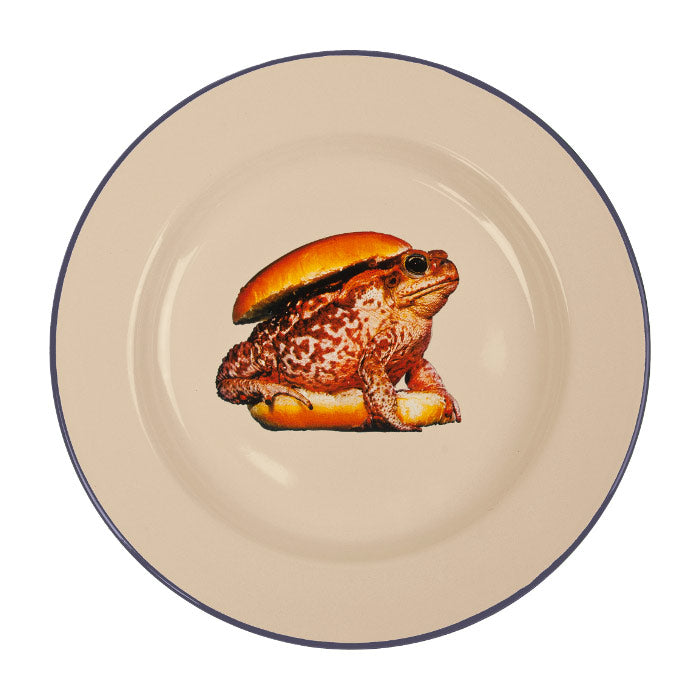 Made of sturdy metal and finished with a smooth enamel coating, this dishwasher safe dinner plate merges practicality with vintage charm. Its slightly glossy surface enhances the sharpness of the print, while its lightweight yet durable body ensures comfort in daily use. Designed for alimentary use, it brings together the tactile appeal of retro enamelware and the visual wit of Maurizio Cattelan & Pierpaolo Ferrari. Whether used for serving, decoration, or as a collectible art piece, it stands out for its unmistakable character, a perfect mix of nostalgia and provocation.