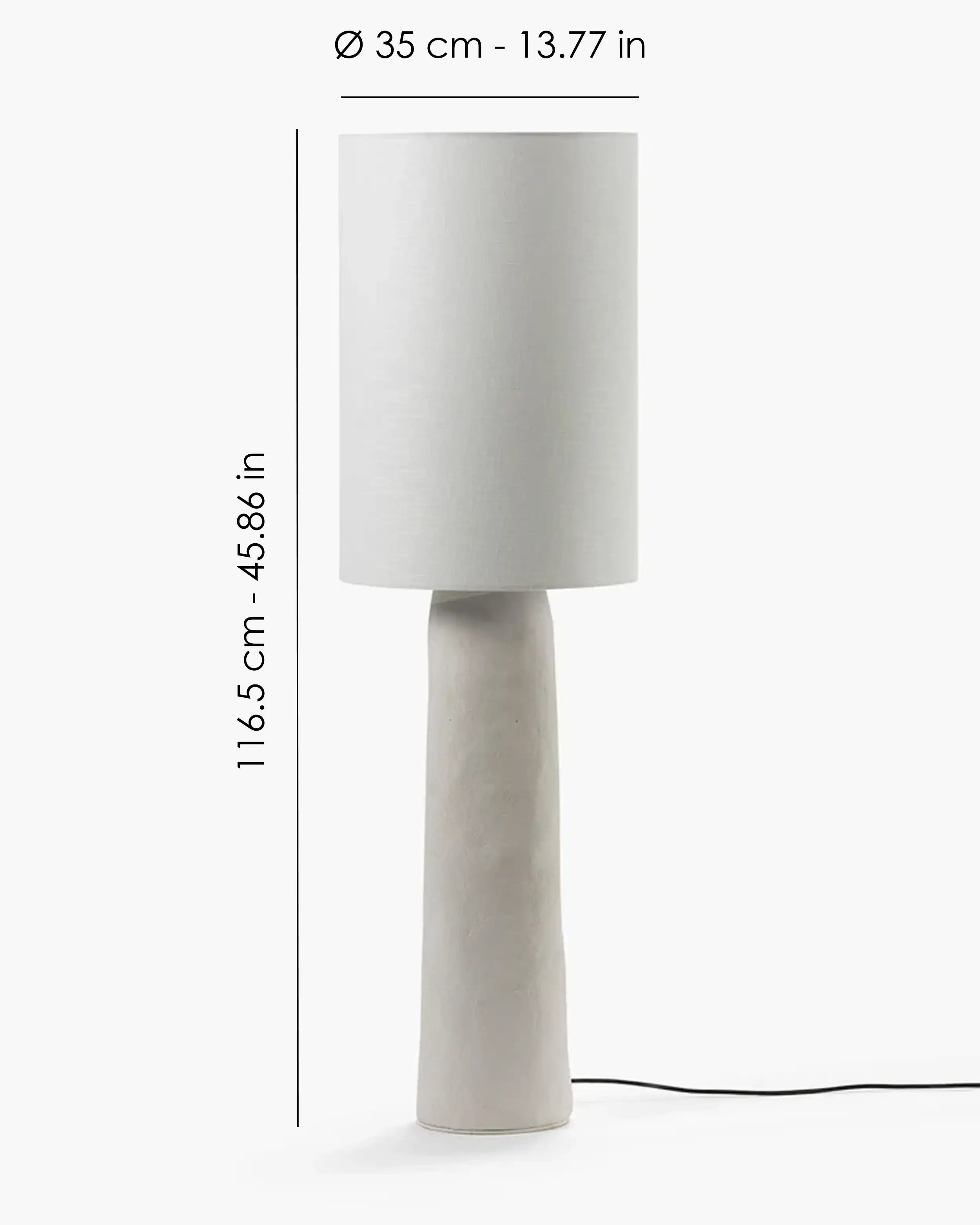 照明類別,在雕塑感與低調功能性之間取得平衡。其高聳的圓柱形結構,採用啞光白色飾面,喚起手工陶瓷的觸感之美,使其既是光源,也是設計欣賞的物件。