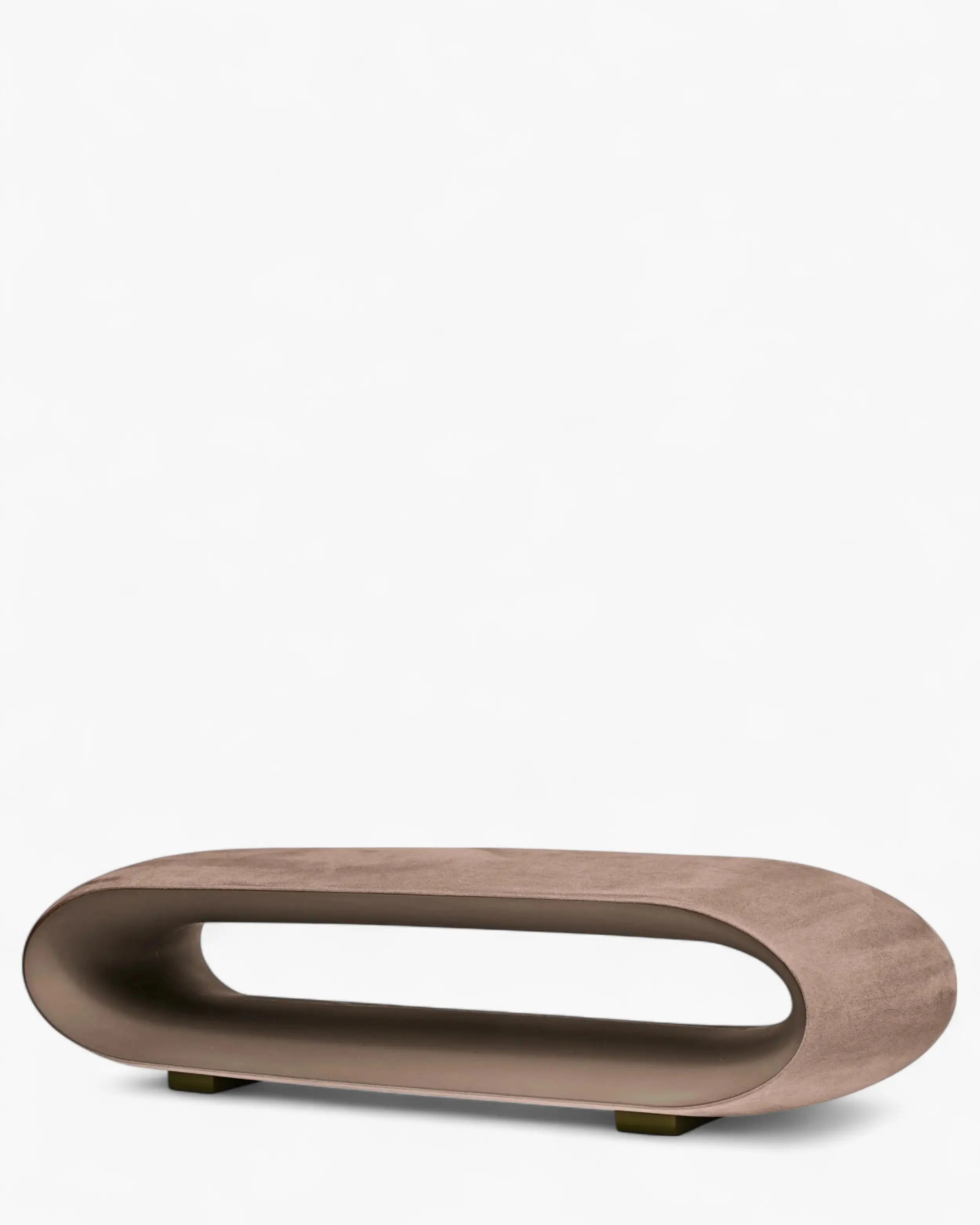 Serralunga Loop 長椅麂皮款,由Christophe Pillet設計,提供了對原始 Loop 的精緻重新詮釋。其流暢連續的造型因特殊的麂皮表面處理而更具吸引力,帶來天鵝絨般的柔軟觸感,將座椅轉化為感官體驗。屬於Serralunga 家具類別,模糊了雕塑與家具的界限,為室內外空間賦予無可錯認的優雅。