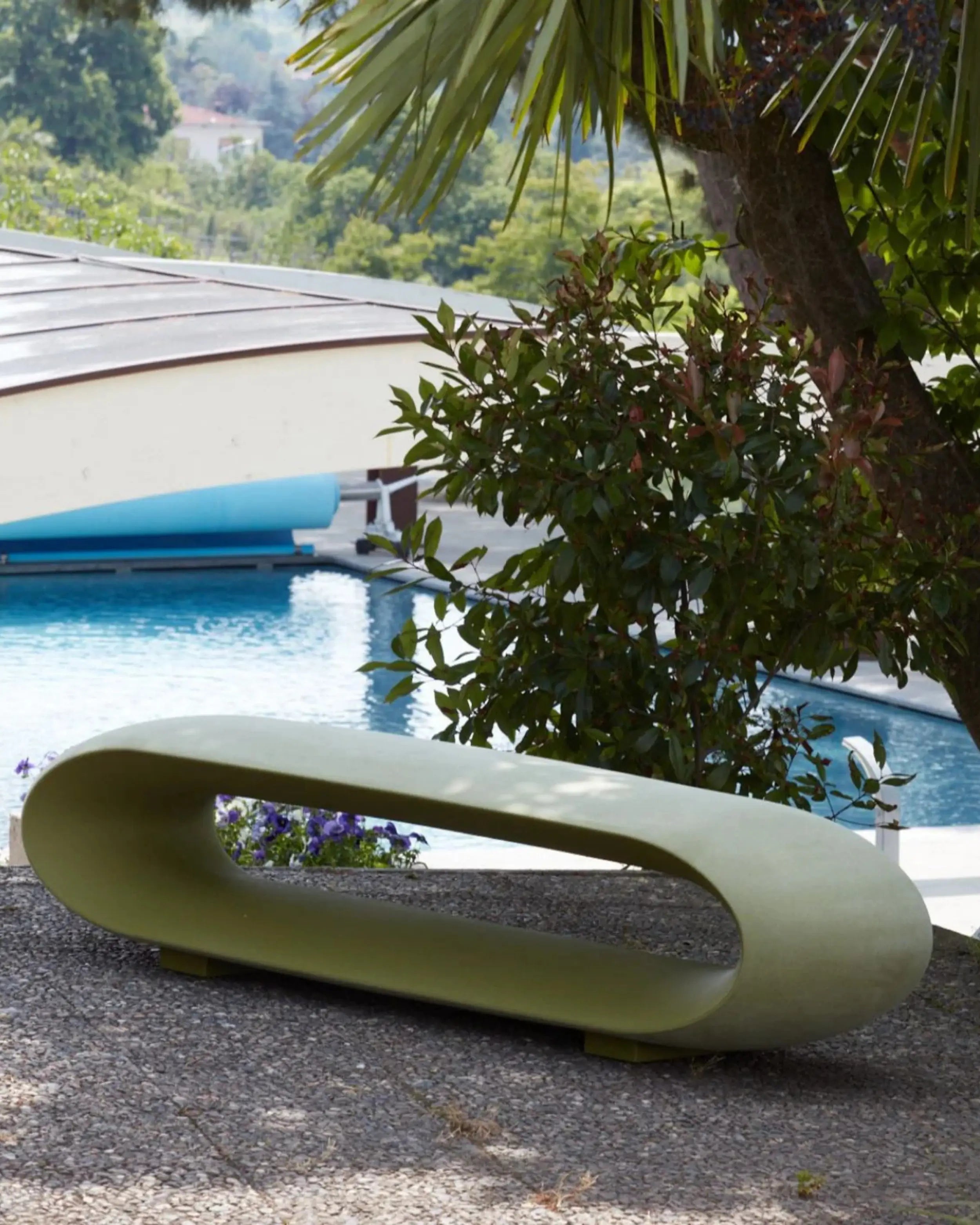 憑藉其雕塑般的輪廓和質感表面,Loop 長椅麂皮款自然搭配Serralunga 雕塑花盆及光亮燈飾產品。結合Pedrali 現代桌子時,可成為庭院的核心,或與Gufram 大膽裝飾或Ibride 藝術家具形成鮮明對比。在公共空間中,它作為設計師花園家具元素發揮作用,而在室內則成為提升整體構圖的焦點作品。