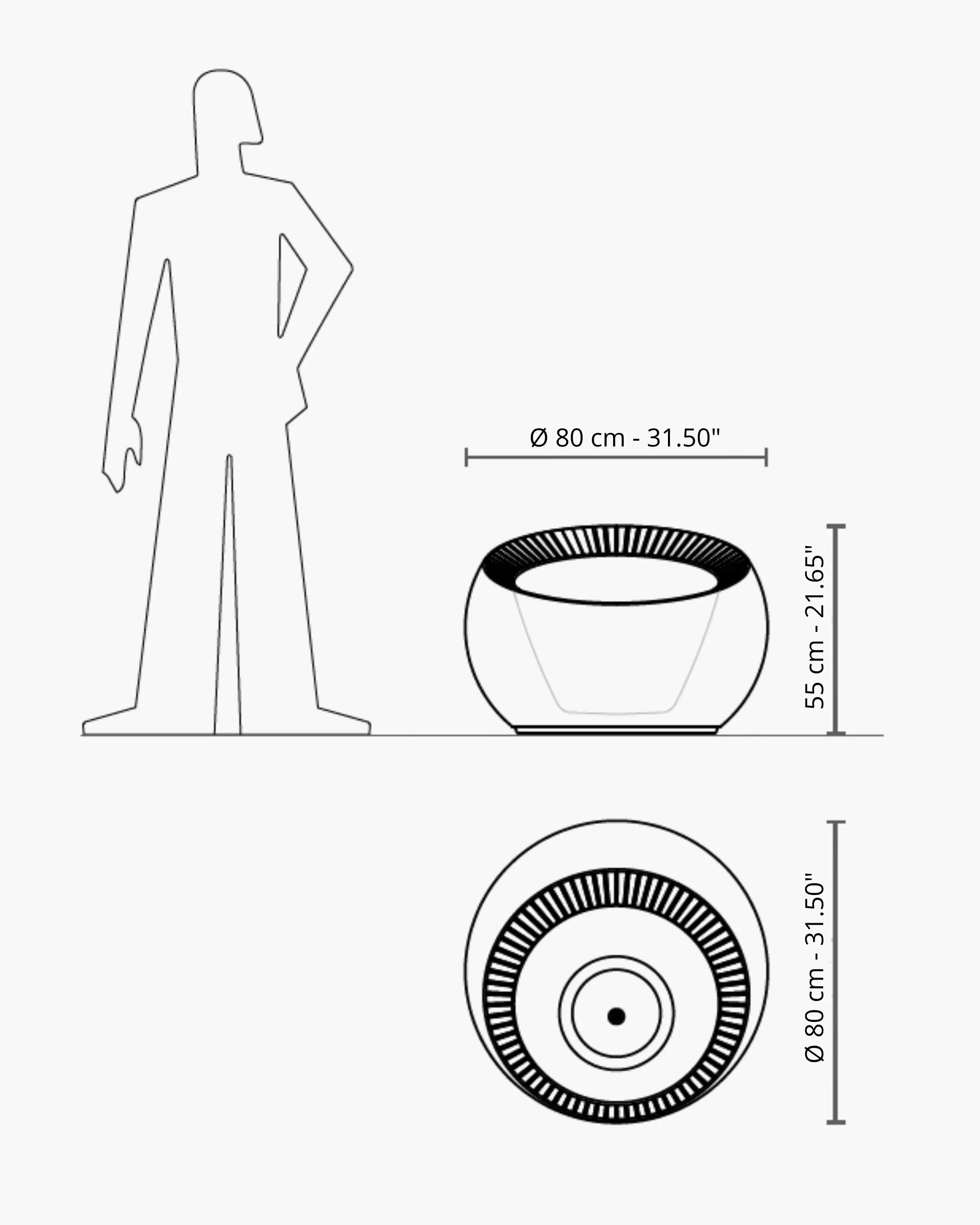儘管其曲線顯示出細膩感,這款花盆卻採用堅固的聚乙烯製成。它耐紫外線、抗衝擊且能承受極端溫度,設計用於全年戶外使用。該材料100%可回收,並採用溶液染色技術以保持持久的色彩強度,確保白色、深灰色和赤陶色調鮮明。其耐用性使其成為與Pedrali 戶外家具搭配於露臺、花園或酒店項目的絕佳選擇。