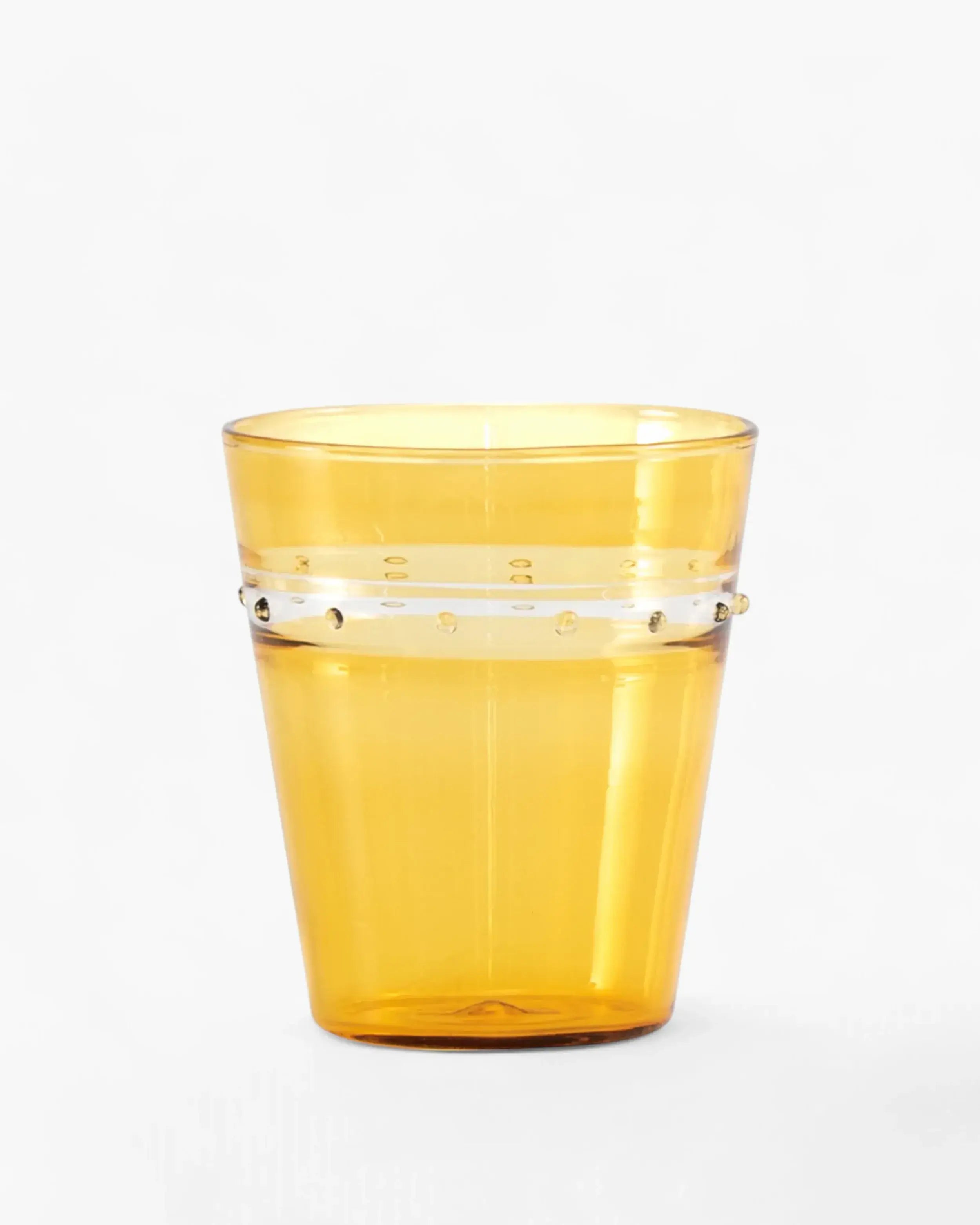 zafferano a pallini 玻璃杯套裝不僅外觀出眾,更適合日常使用。這些玻璃杯耐熱震,能輕鬆應對熱飲與冷飲。此外,其可用洗碗機清洗的設計讓清潔變得輕鬆,讓您無憂享受時尚玻璃器皿。